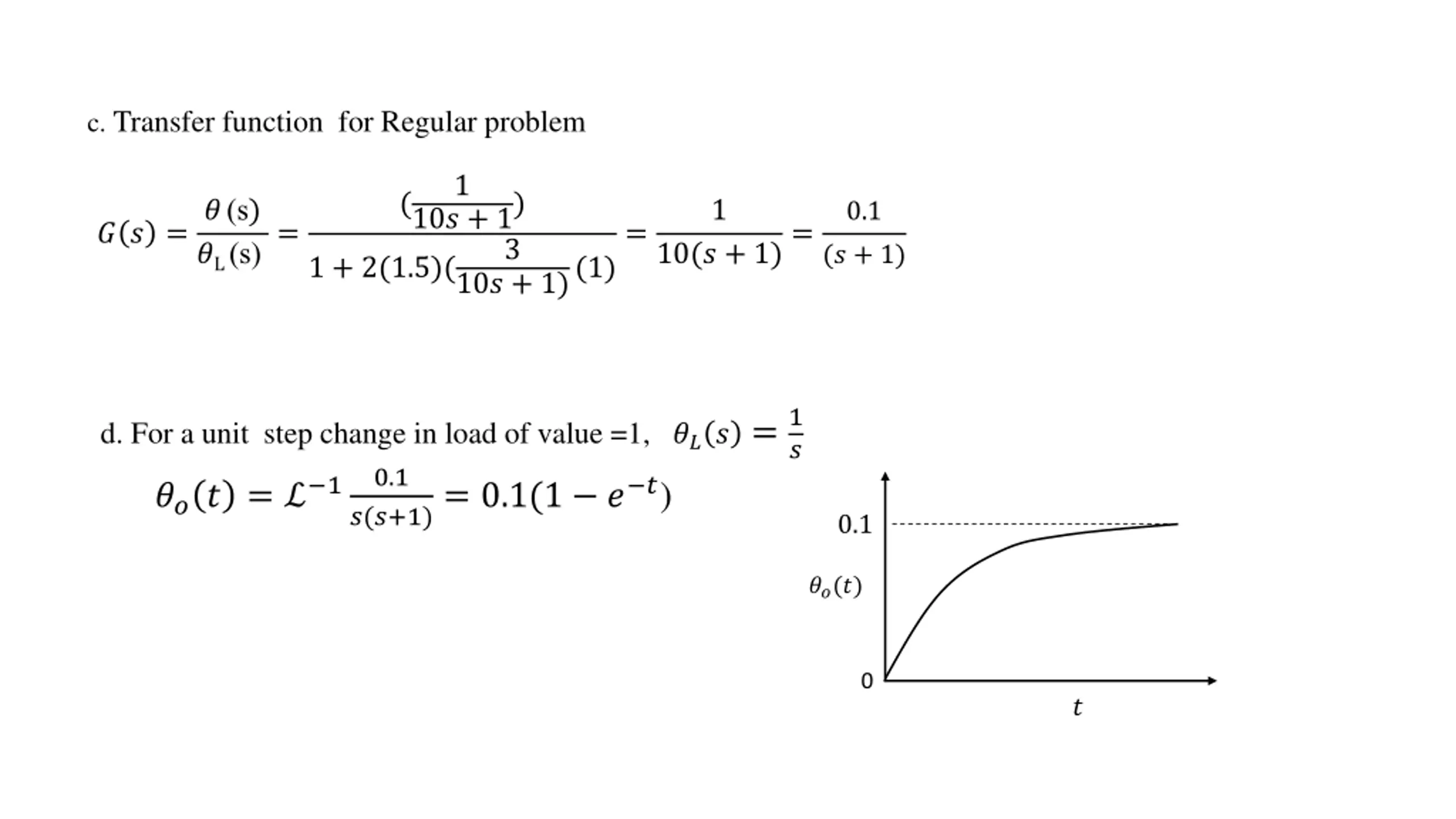 c. Transfer function for Regular problem 1 ( 10? + 1) ?(s) ?L (s) = 1 0.1 ? ? = = 10(? + 1)= 3 (? + 1) 1 + 2(1.5)( 10? + 1)(1) d. For a unit step change in load of value =1, ??? =1 0.1 ?(?+1)= 0.1(1 ? ?) ? ??? = 1 0.1 ??(?) 0 ?