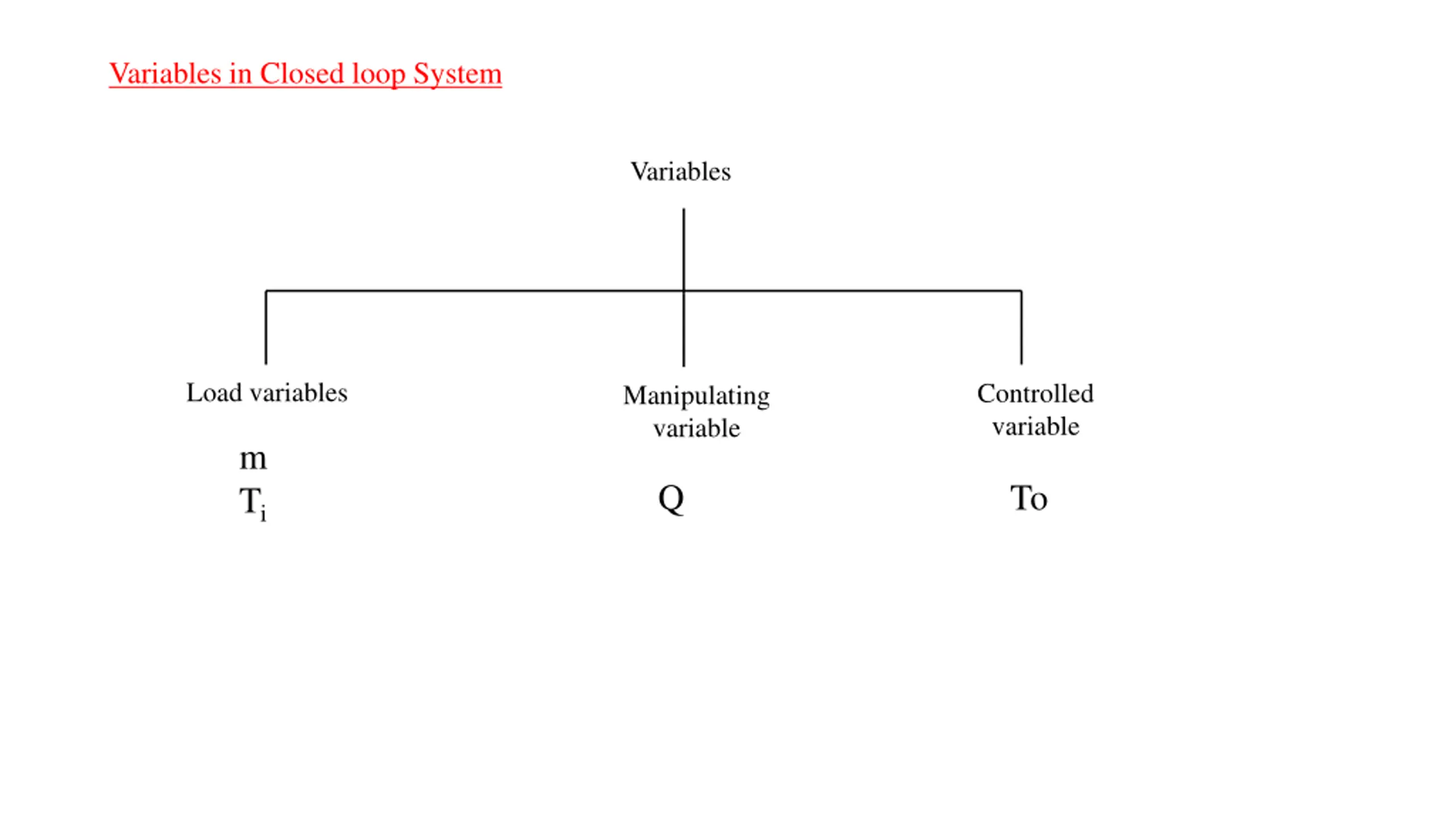 Variables in Closed loop System Variables Load variables Controlled variable Manipulating variable m Ti Q To