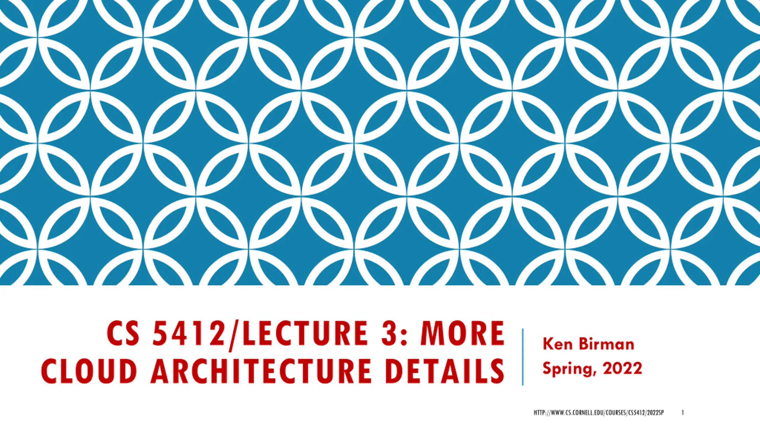 CS 5412/LECTURE 3: MORE CLOUD ARCHITECTURE DETAILS Ken Birman Spring, 2022 HTTP://WWW.CS.CORNELL.EDU/COURSES/CS5412/2022SP 1