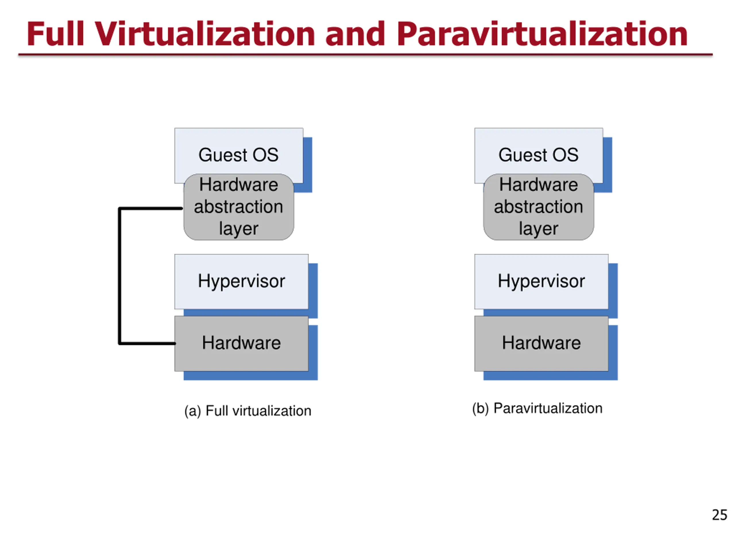 Full Virtualization and Paravirtualization Guest OS Hardware abstraction layer Guest OS Hardware abstraction layer Hypervisor Hypervisor Hardware Hardware (b) Paravirtualization (a) Full virtualization 25
