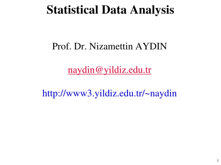 Statistical Data Analysis Prof. Dr. Nizamettin AYDIN naydin@yildiz.edu.tr http://www3.yildiz.edu.tr/~naydin 1