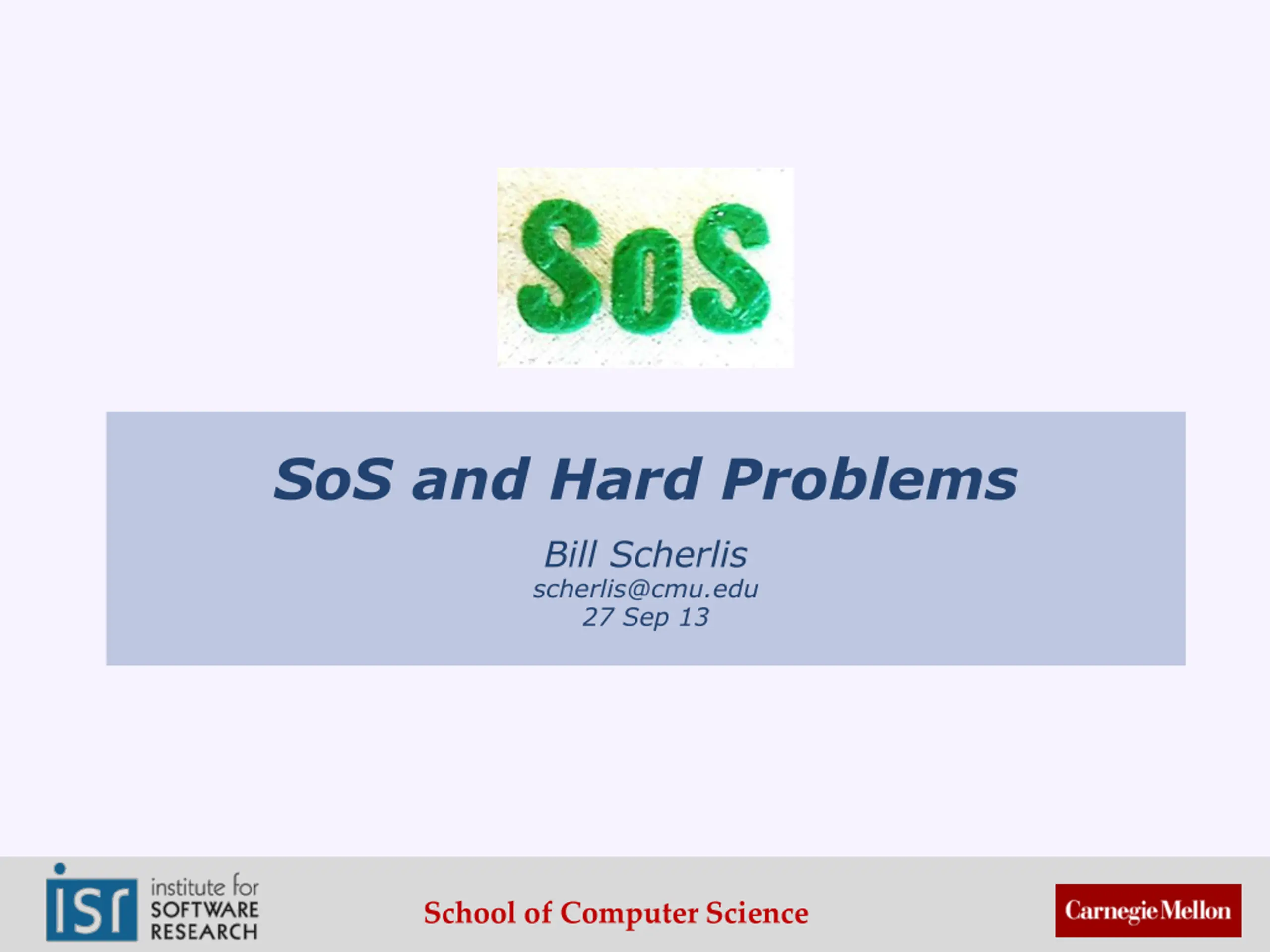 SoS and Hard Problems Bill Scherlis scherlis@cmu.edu 27 Sep 13 School of Computer Science