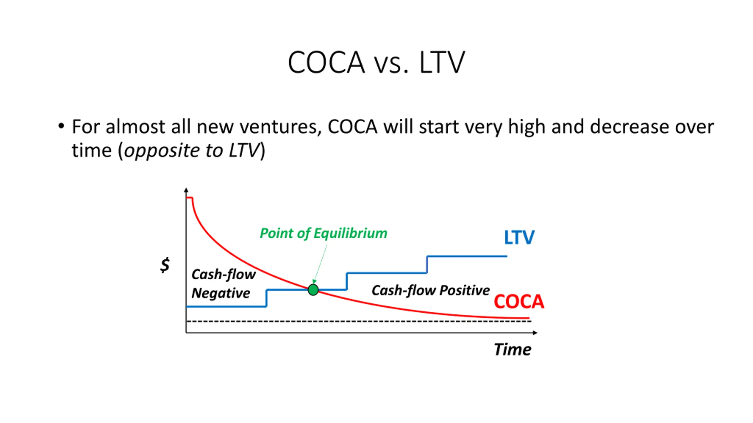 COCA vs. LTV For almost all new ventures, COCA will start very high and decrease over time (opposite to LTV) Point of Equilibrium LTV $ Cash-flow Negative Cash-flow Positive COCA Time