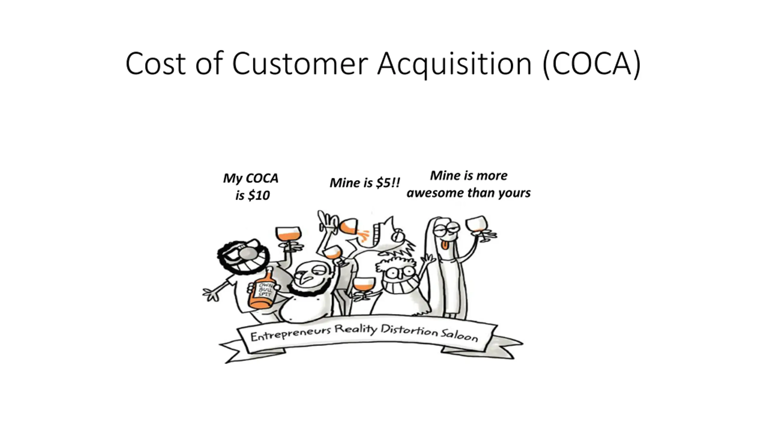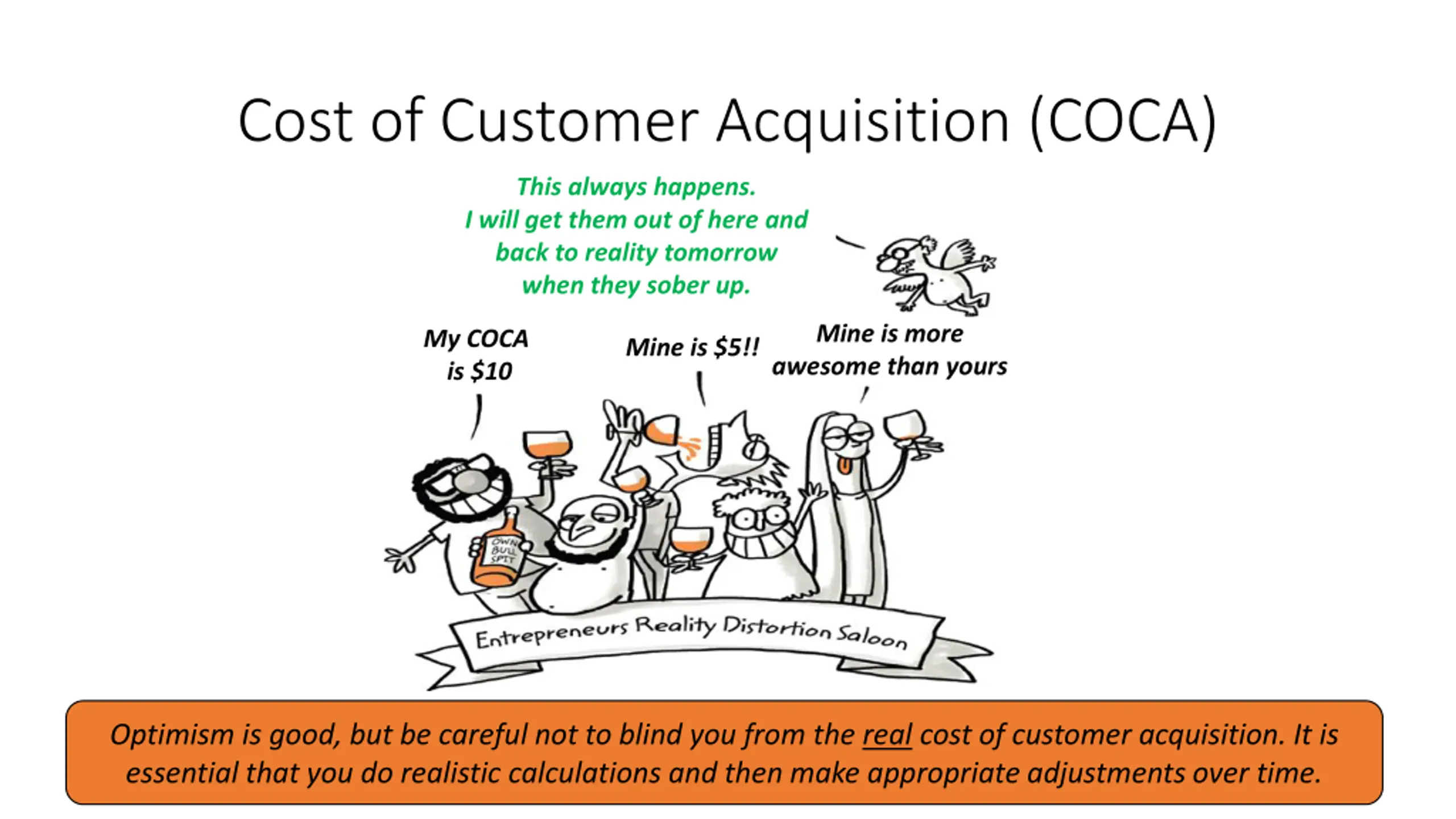 Cost of Customer Acquisition (COCA) This always happens. I will get them out of here and back to reality tomorrow when they sober up. My COCA is $10 is $10 Mine is more Mine is more awesome than yours awesome than yours Mine is $5!!! Mine is $5!! My COCA Optimism is good, but be careful not to blind you from the real cost of customer acquisition. It is essential that you do realistic calculations and then make appropriate adjustments over time.