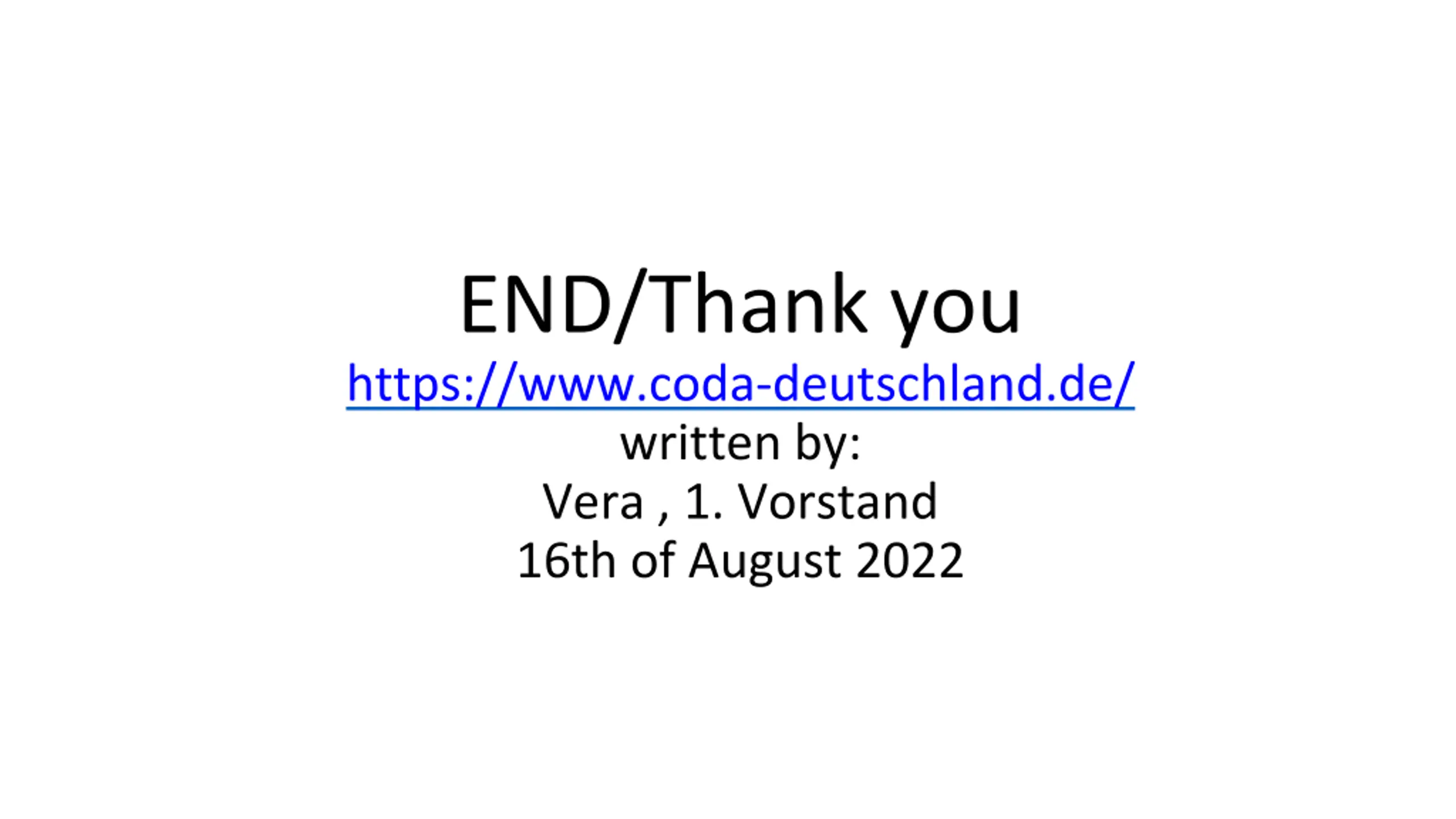 END/Thank you https://www.coda-deutschland.de/ written by: Vera , 1. Vorstand 16th of August 2022