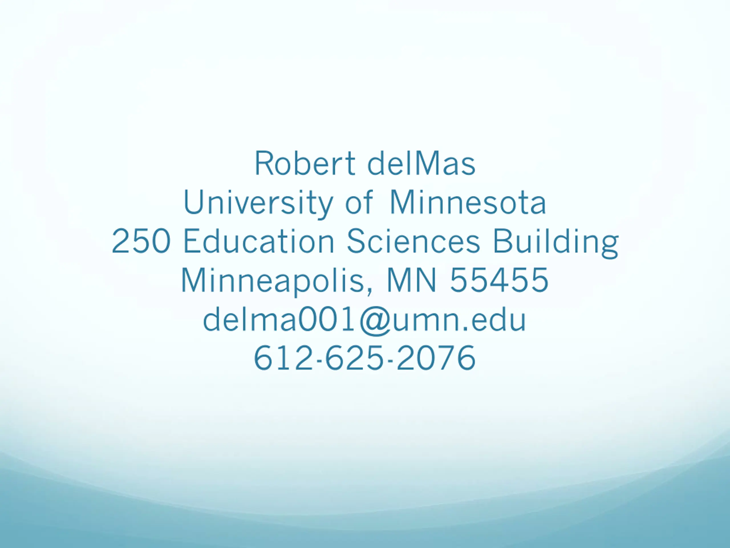 Robert delMas University of Minnesota 250 Education Sciences Building Minneapolis, MN 55455 delma001@umn.edu 612-625-2076