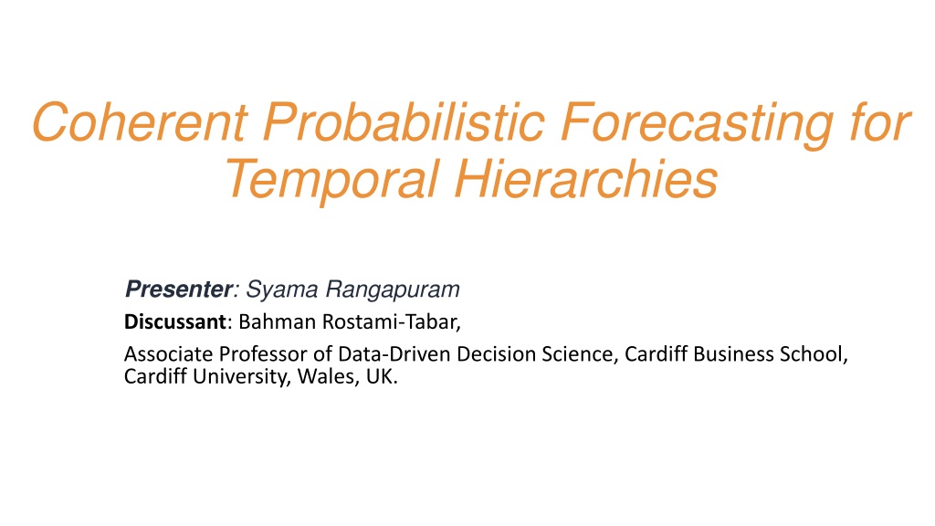Coherent Probabilistic Forecasting for Temporal Hierarchies Presenter: Syama Rangapuram Discussant: Bahman Rostami-Tabar, Associate Professor of Data-Driven Decision Science, Cardiff Business School, Cardiff University, Wales, UK.