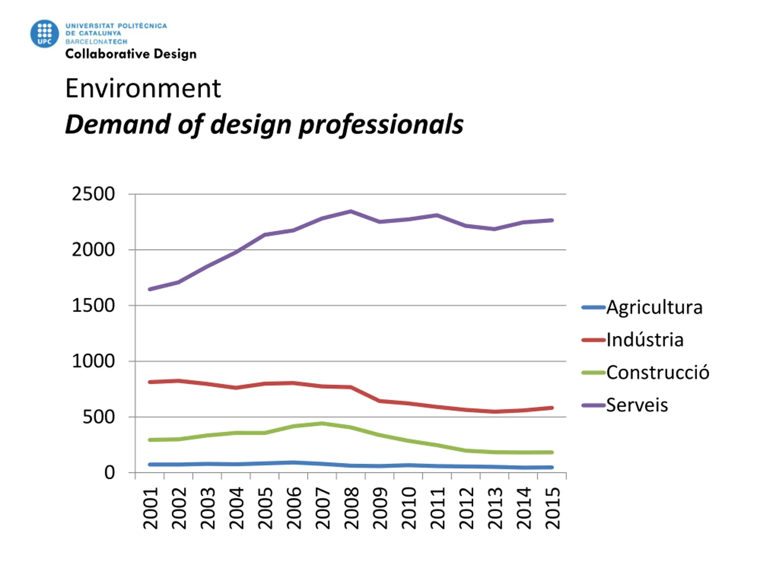 Collaborative Design Environment Demand of design professionals 2500 2000 1500 Agricultura Ind stria 1000 Construcci Serveis 500 0 2001 2002 2003 2004 2005 2006 2007 2008 2009 2010 2011 2012 2013 2014 2015
