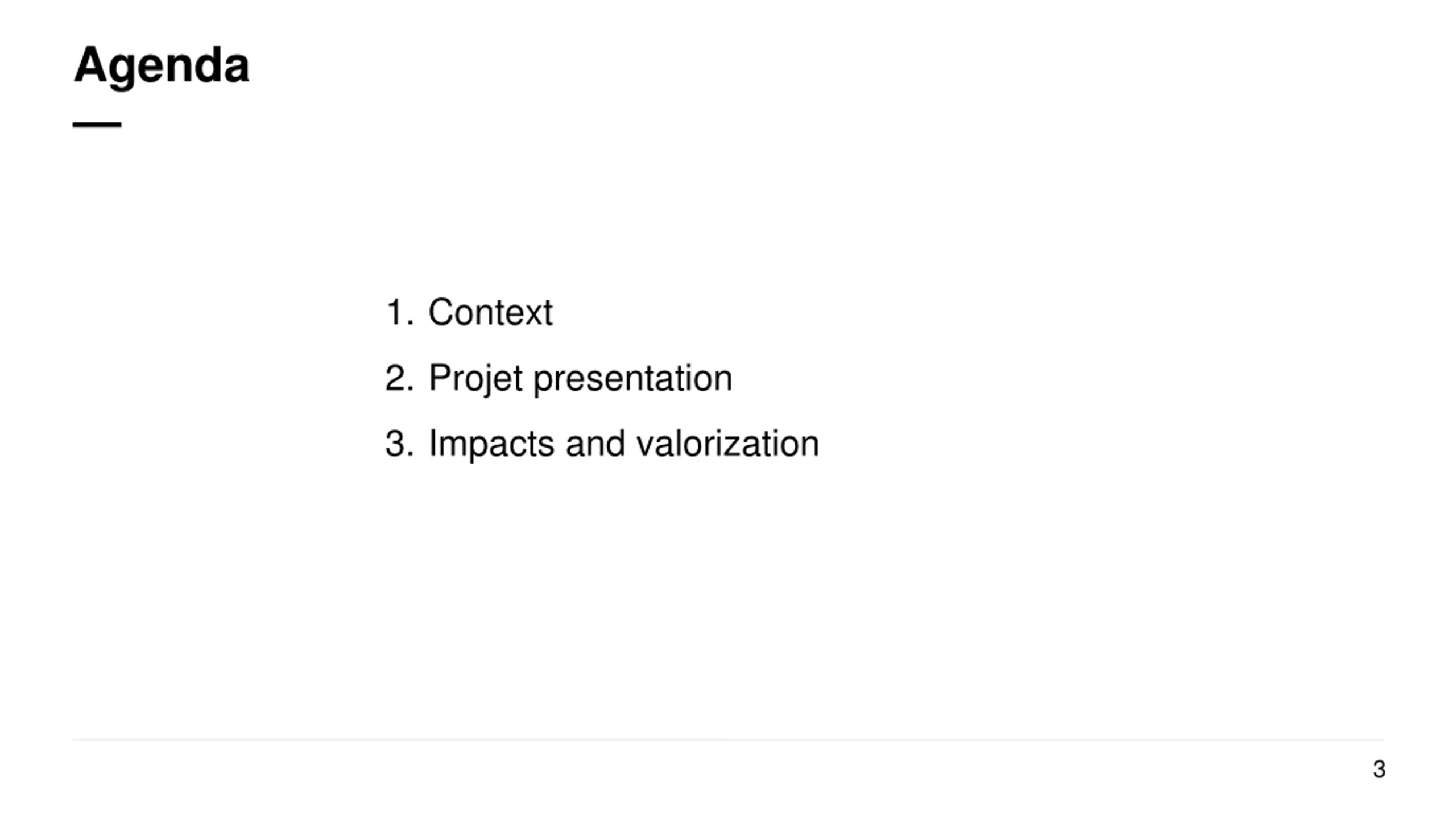 Agenda 1. Context 2. Projet presentation 3. Impacts and valorization 3