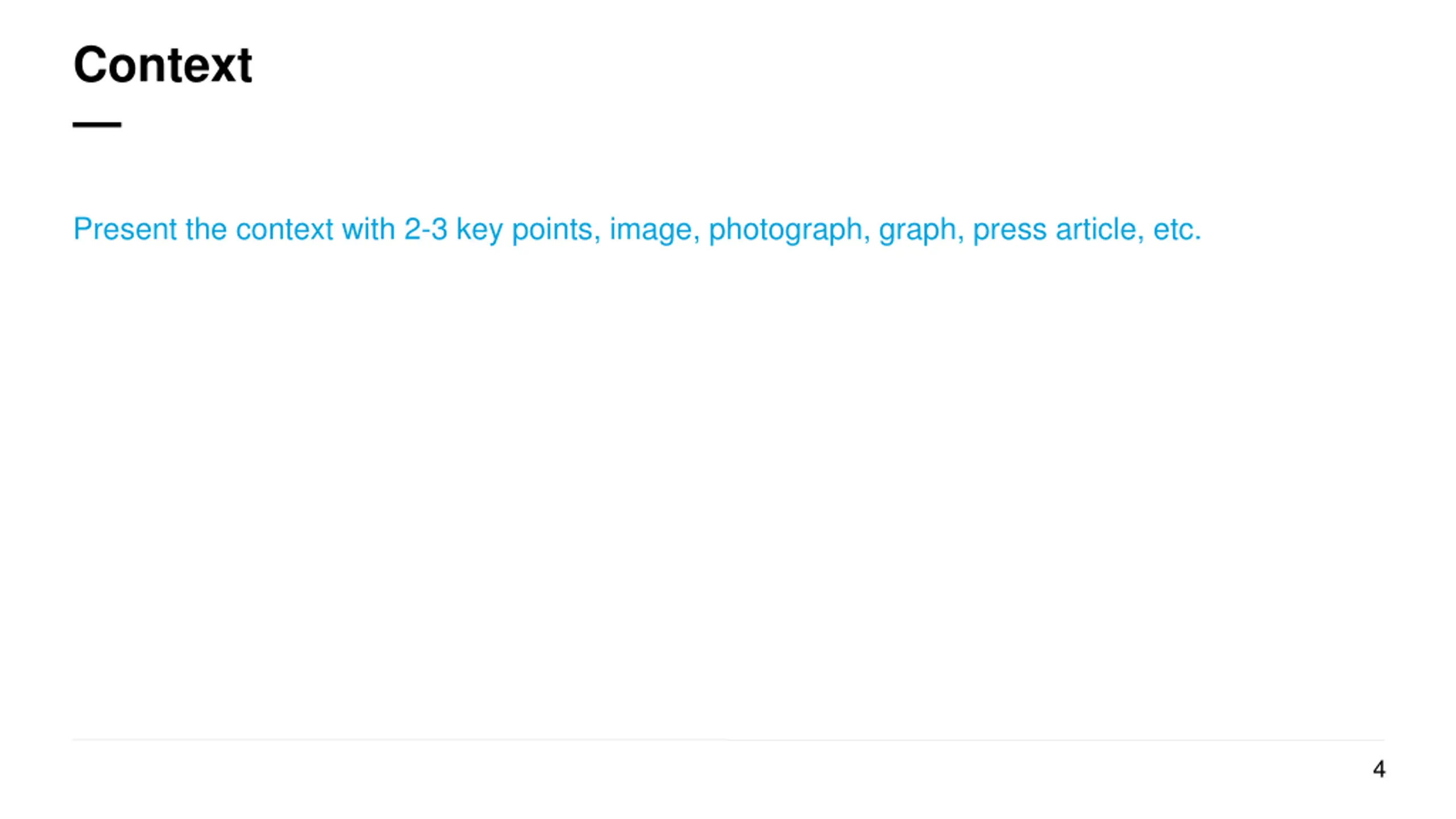 Context Present the context with 2-3 key points, image, photograph, graph, press article, etc. 4