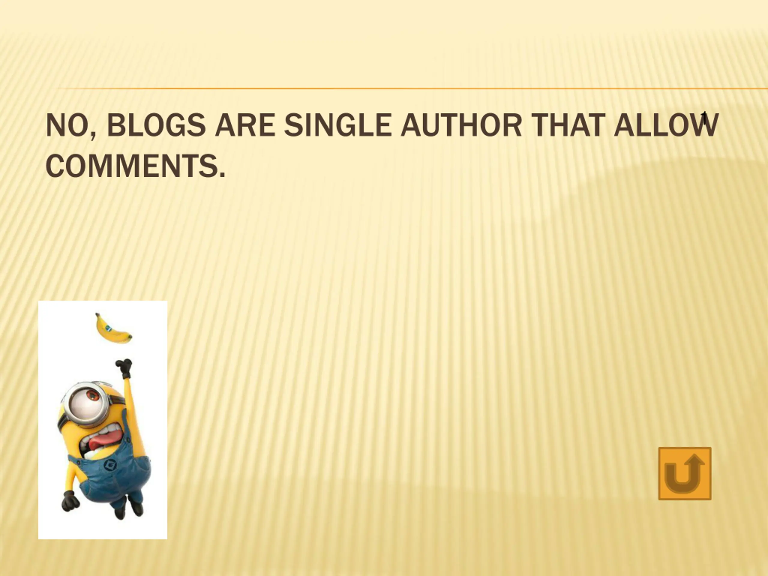 NO, BLOGS ARE SINGLE AUTHOR THAT ALLOW COMMENTS. 1