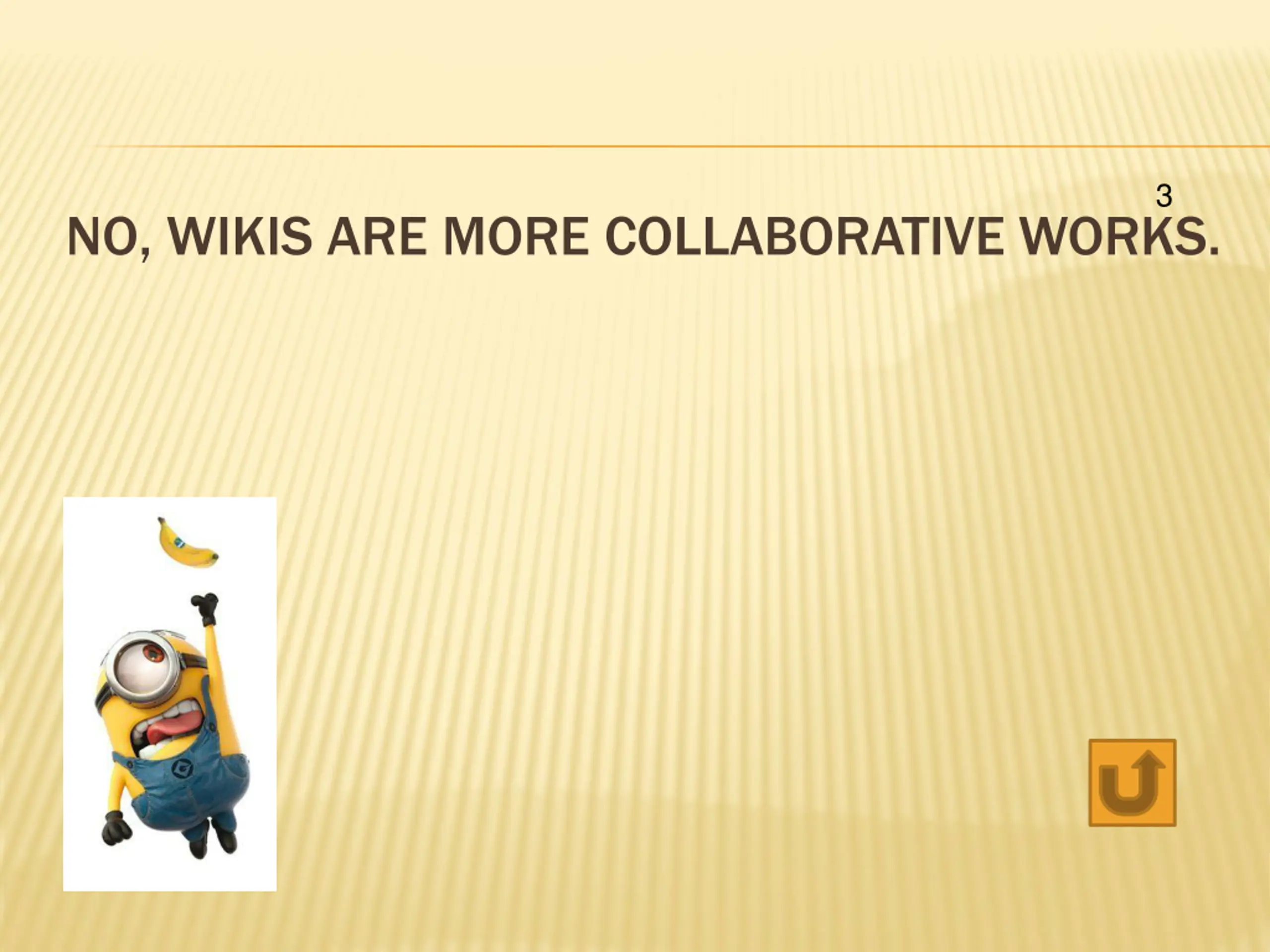 3 NO, WIKIS ARE MORE COLLABORATIVE WORKS.