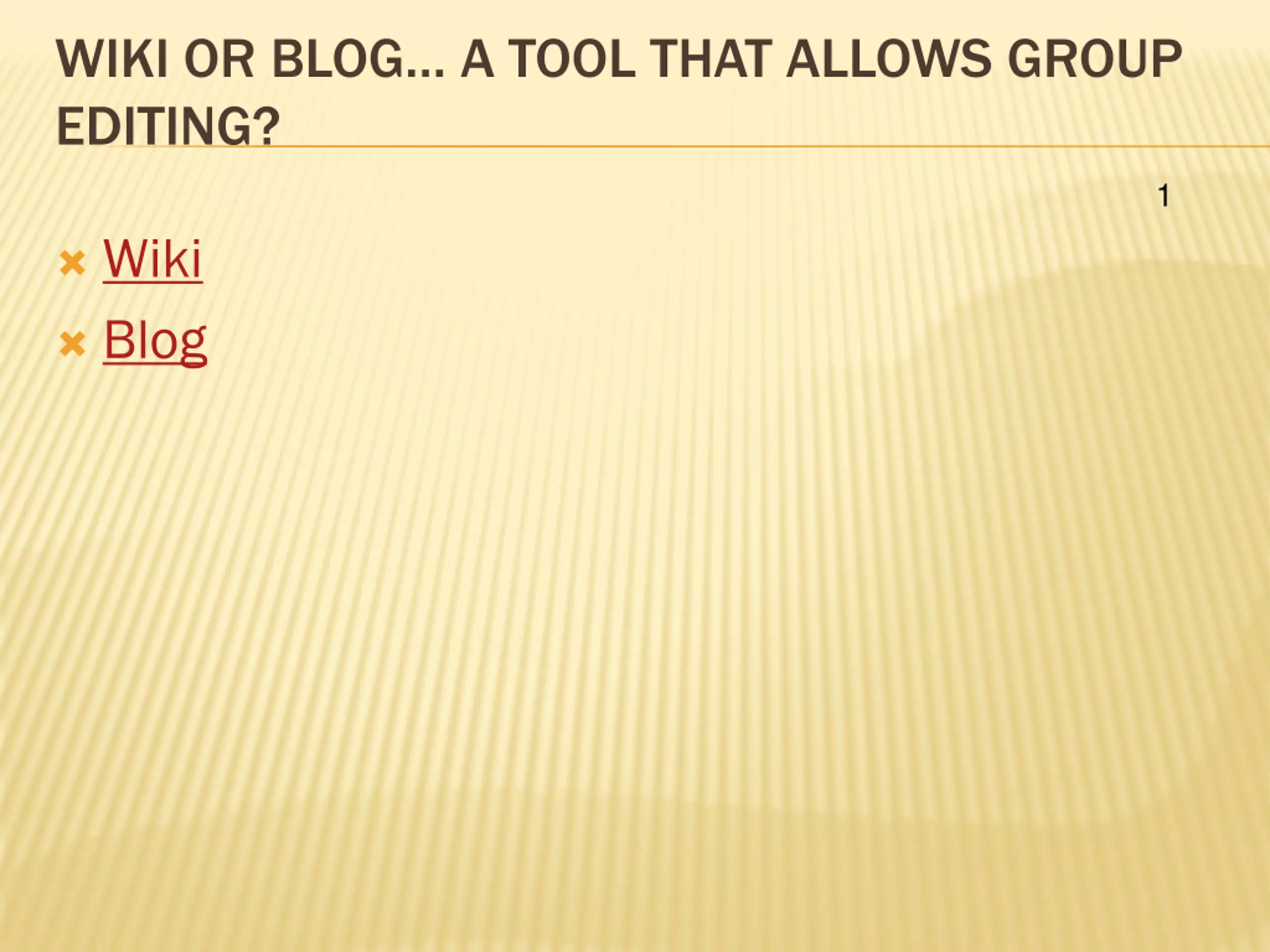 WIKI OR BLOG A TOOL THAT ALLOWS GROUP EDITING? 1 Wiki Blog