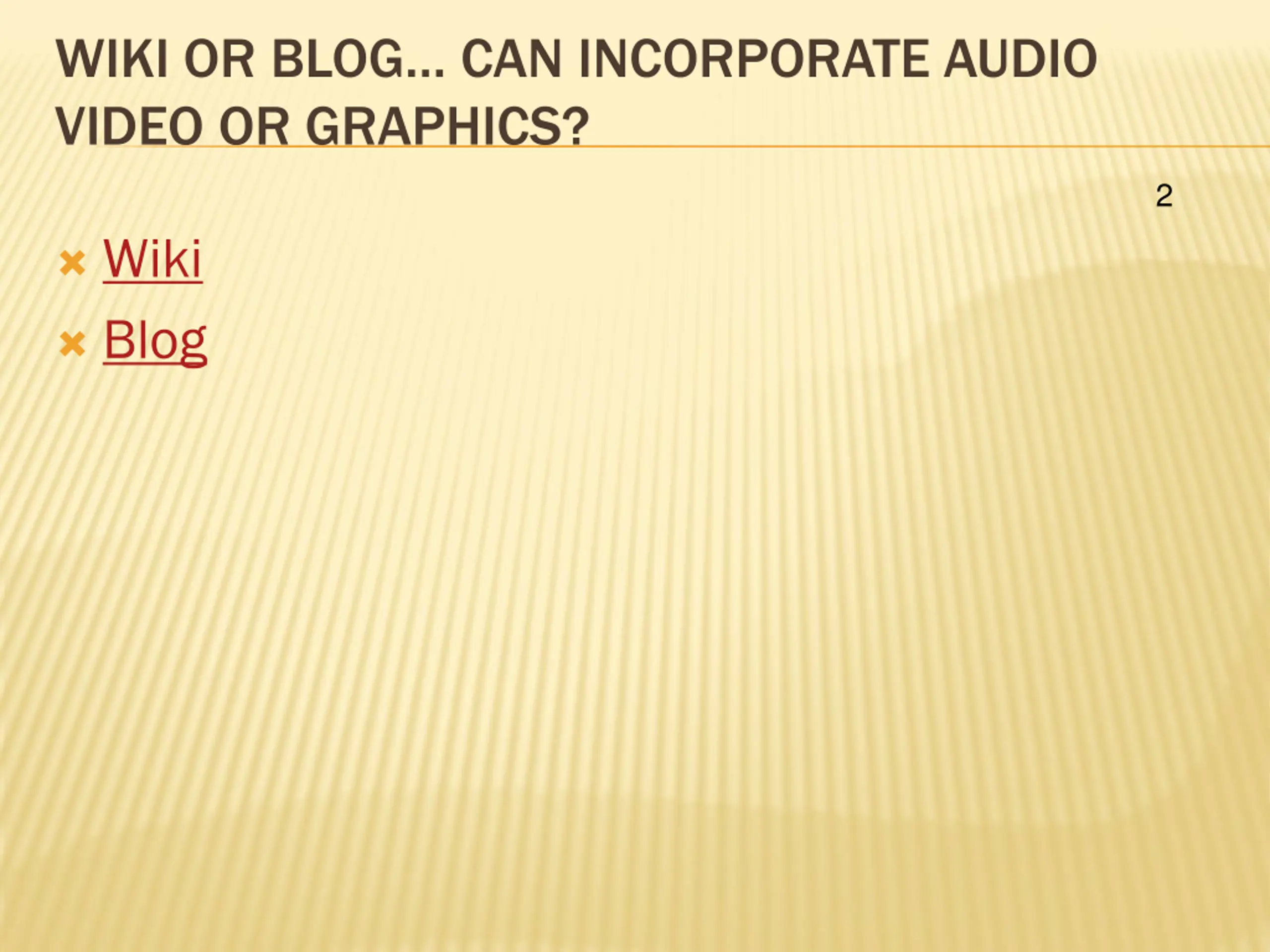 WIKI OR BLOG CAN INCORPORATE AUDIO VIDEO OR GRAPHICS? 2 Wiki Blog