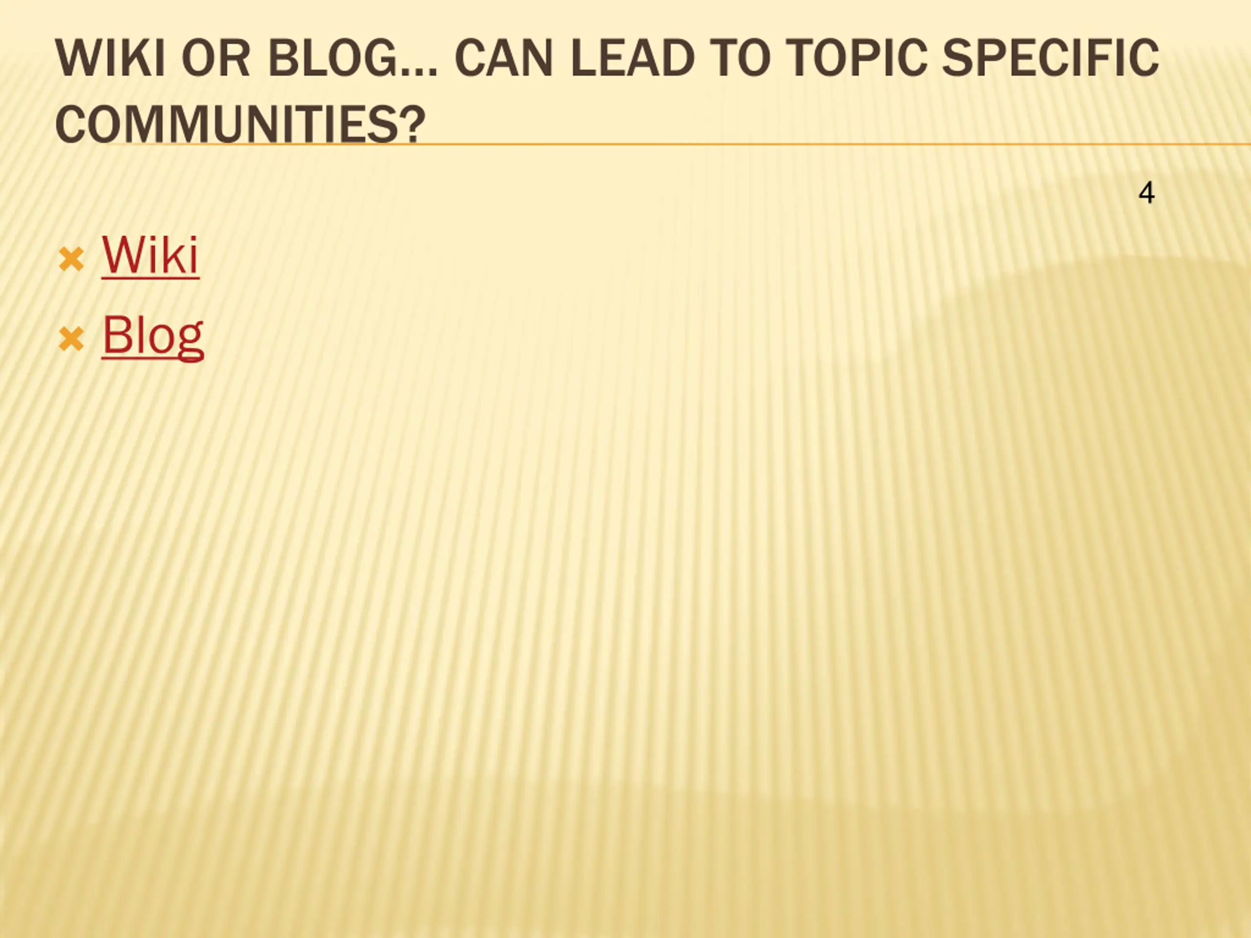 WIKI OR BLOG CAN LEAD TO TOPIC SPECIFIC COMMUNITIES? 4 Wiki Blog