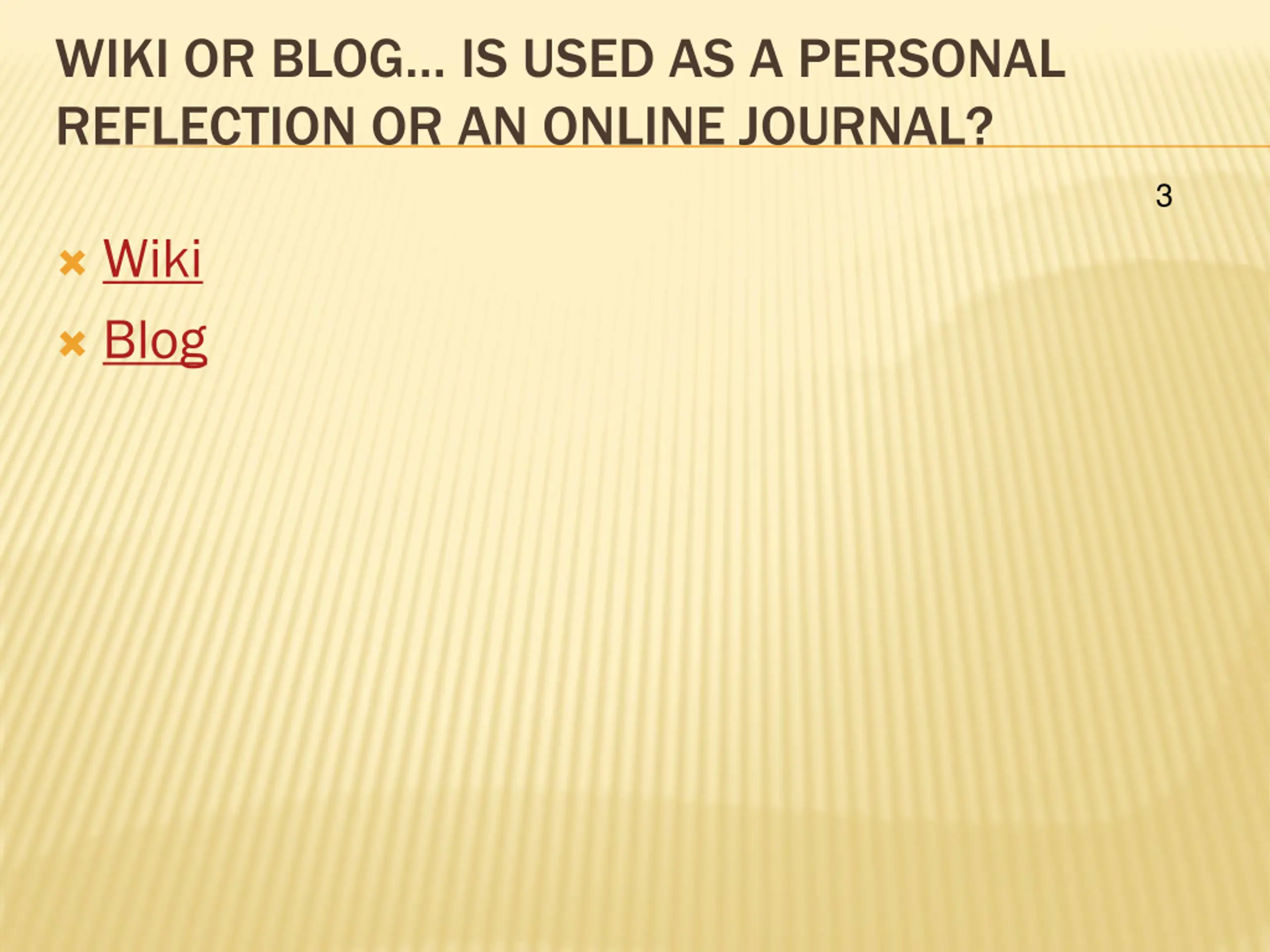 WIKI OR BLOG IS USED AS A PERSONAL REFLECTION OR AN ONLINE JOURNAL? 3 Wiki Blog