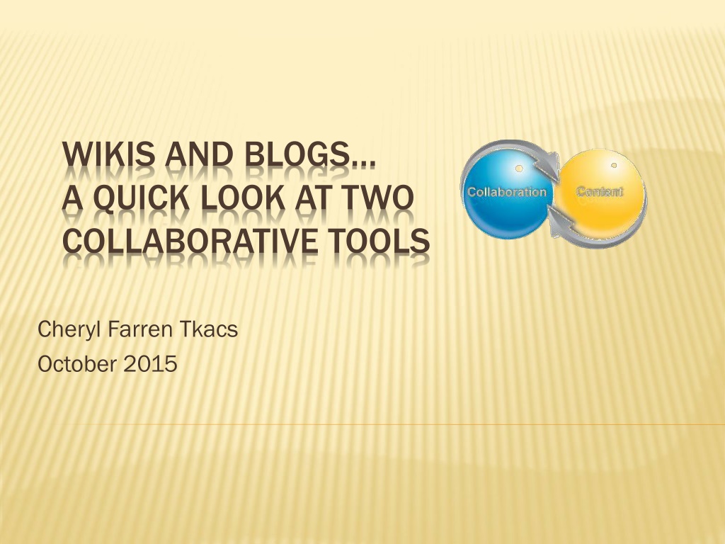 WIKIS AND BLOGS A QUICK LOOK AT TWO COLLABORATIVE TOOLS Cheryl Farren Tkacs October 2015