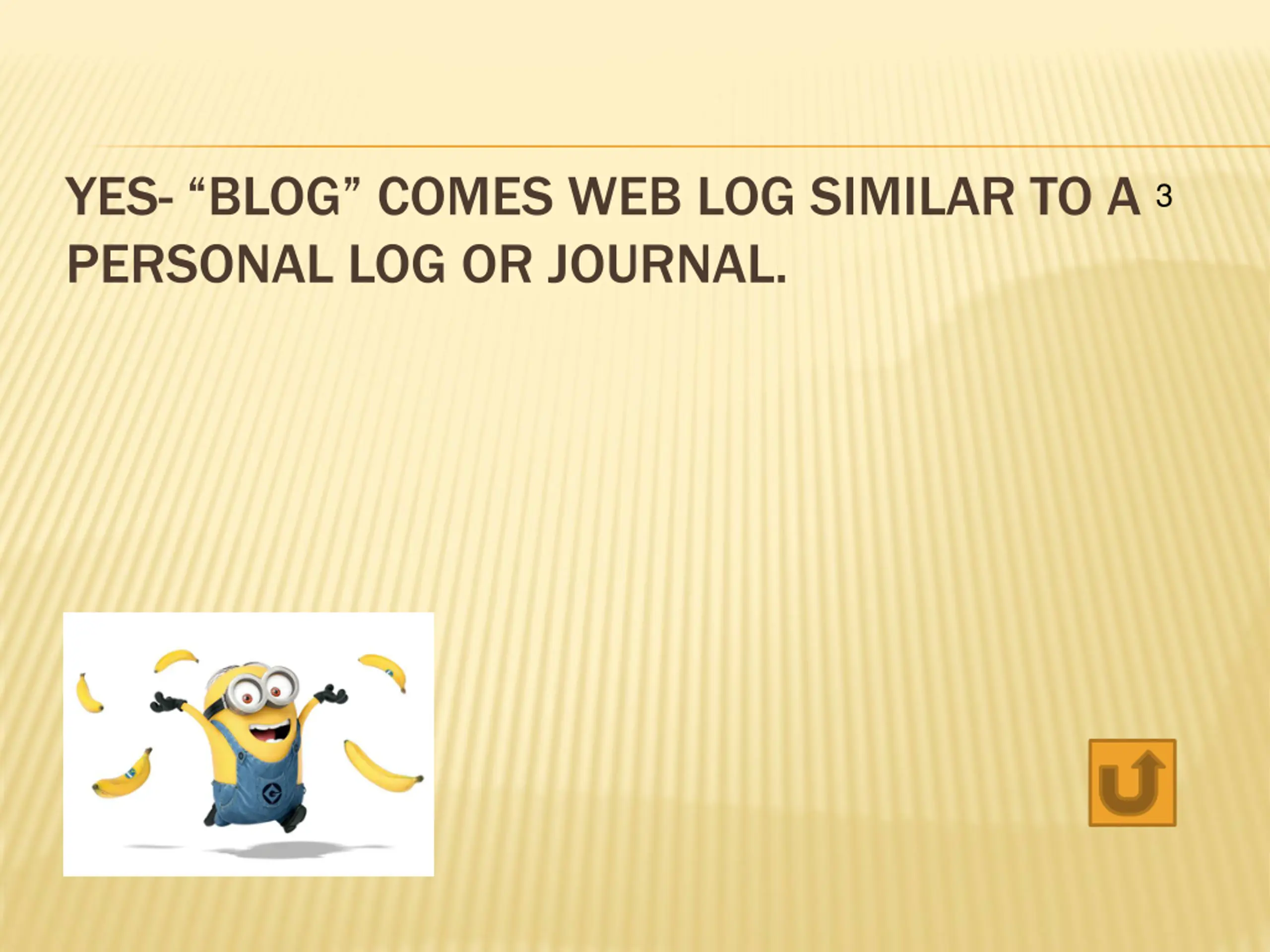 YES- BLOG COMES WEB LOG SIMILAR TO A PERSONAL LOG OR JOURNAL. 3