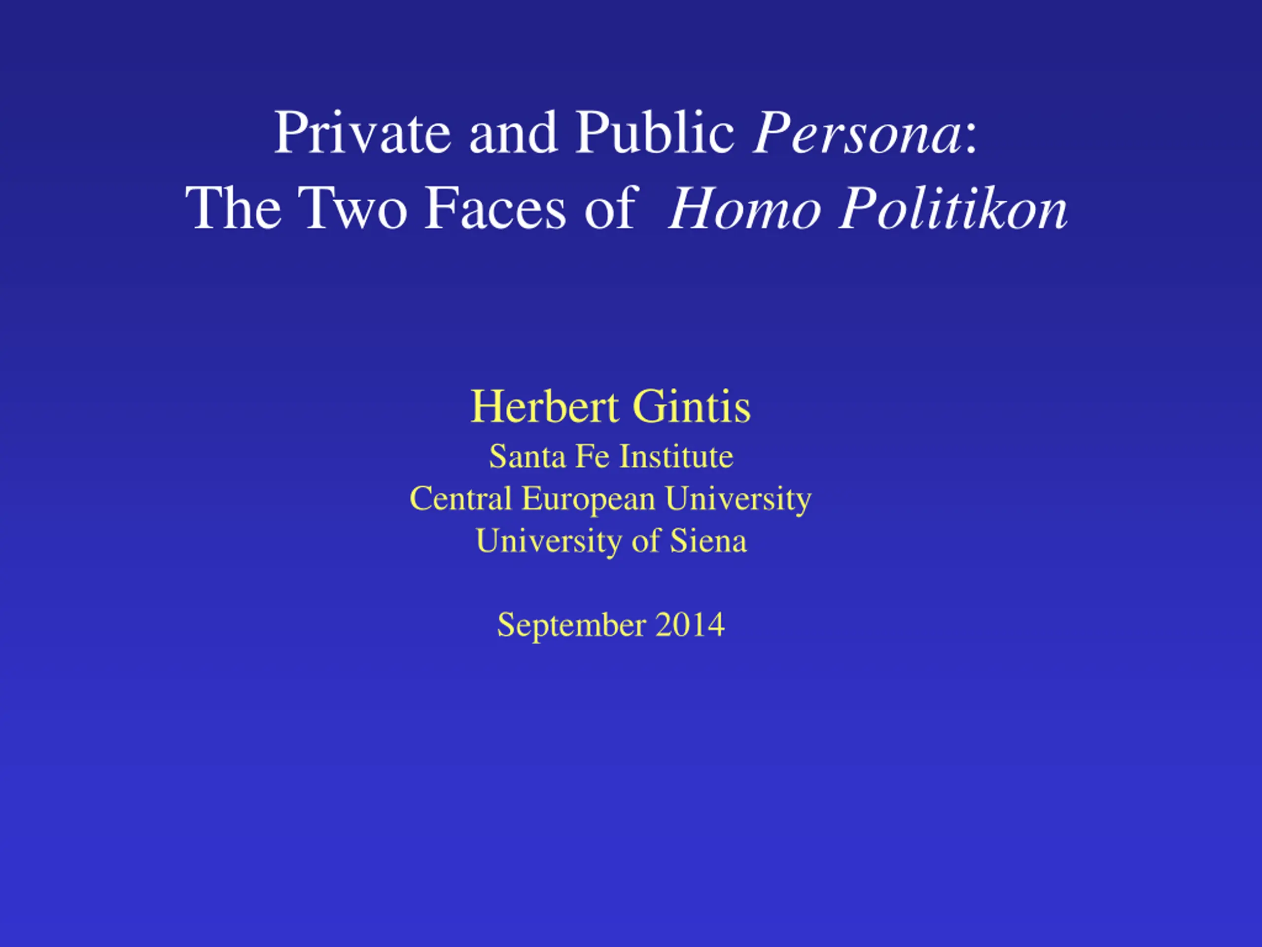 Private and Public Persona: The Two Faces of Homo Politikon Herbert Gintis Santa Fe Institute Central European University University of Siena September 2014
