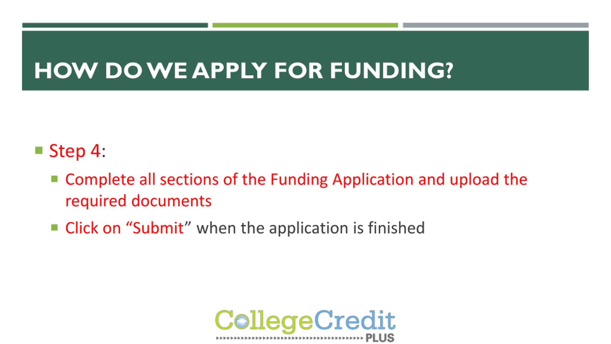 HOW DO WE APPLY FOR FUNDING? Step 4: Complete all sections of the Funding Application and upload the required documents Click on Submit when the application is finished