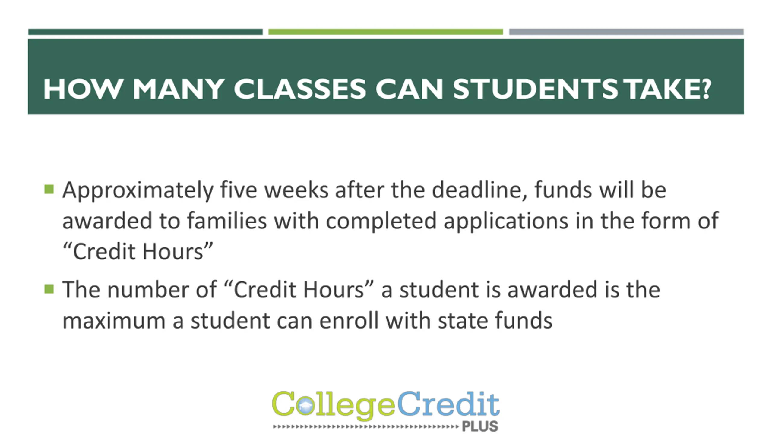 HOW MANY CLASSES CAN STUDENTS TAKE? Approximately five weeks after the deadline, funds will be awarded to families with completed applications in the form of Credit Hours The number of Credit Hours a student is awarded is the maximum a student can enroll with state funds