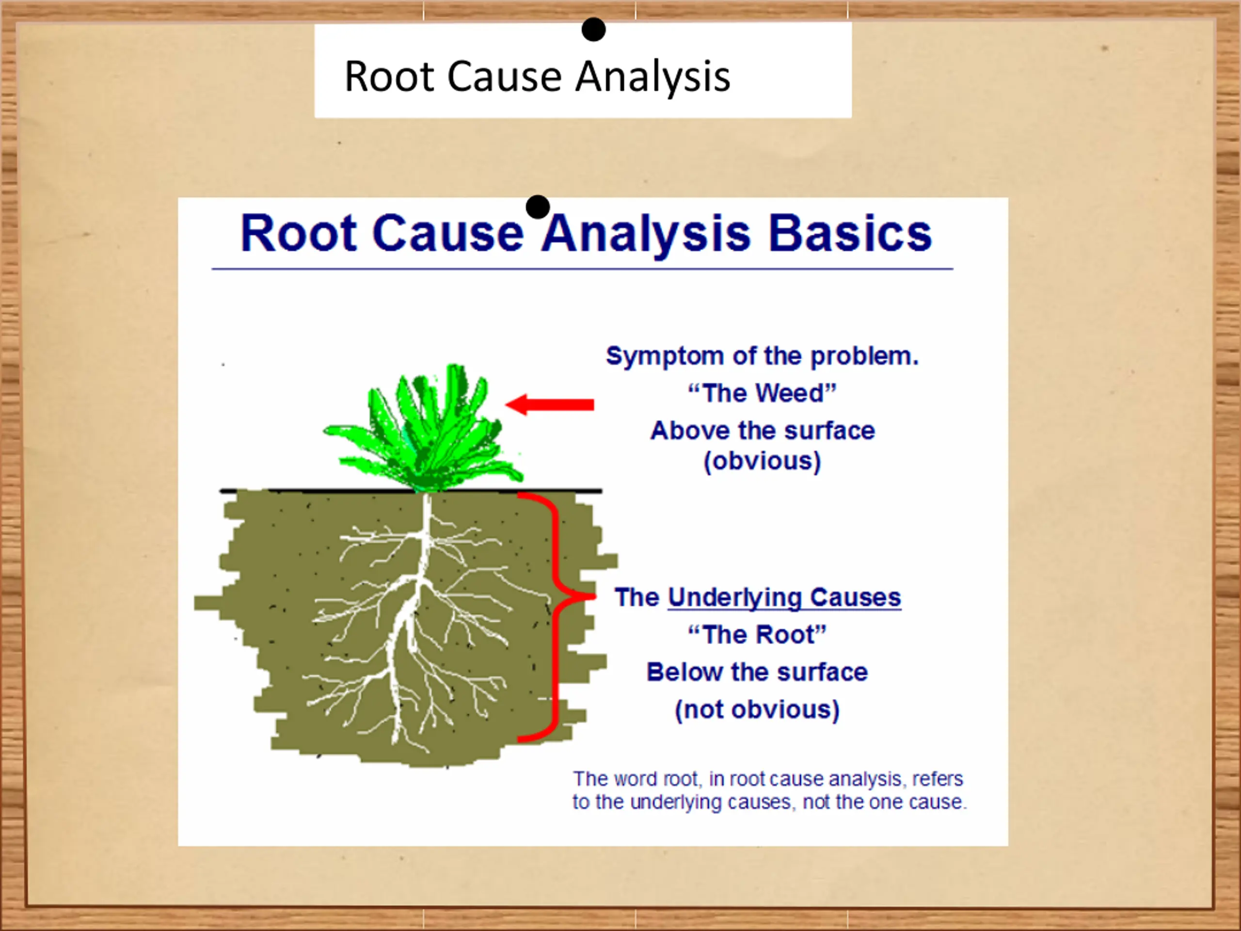 Multiple Root Causes The word root, in root cause analysis refers to the causes that are beneath the surface. Most organizations mistakenly use the term "root cause" to identify the one, main cause. Focusing on a single cause can limit the solutions set, resulting in better solutions being missed. The root is the system of causes that reveals all of the different options for solutions.