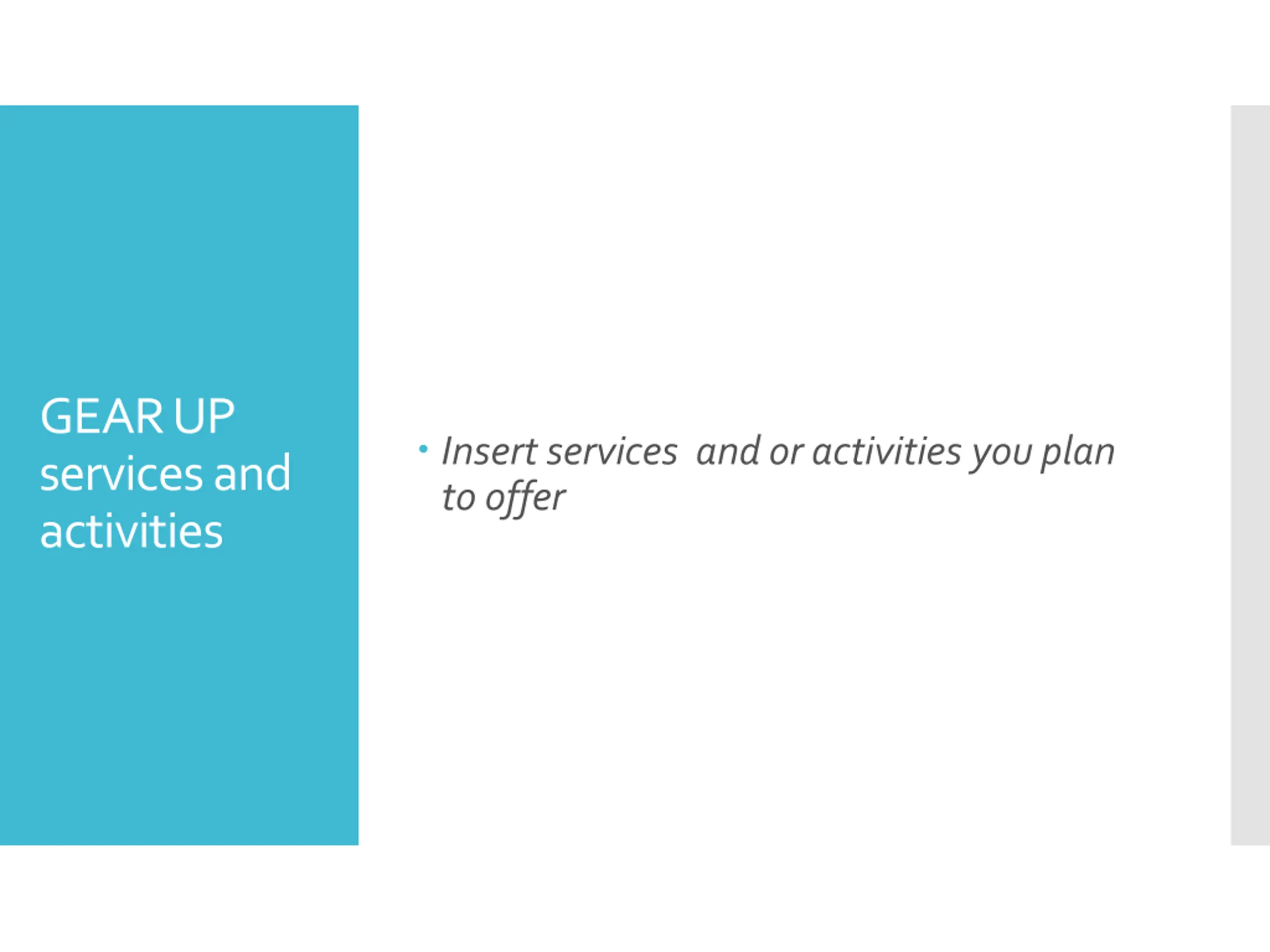 GEAR UP services and activities Insert services and or activities you plan to offer