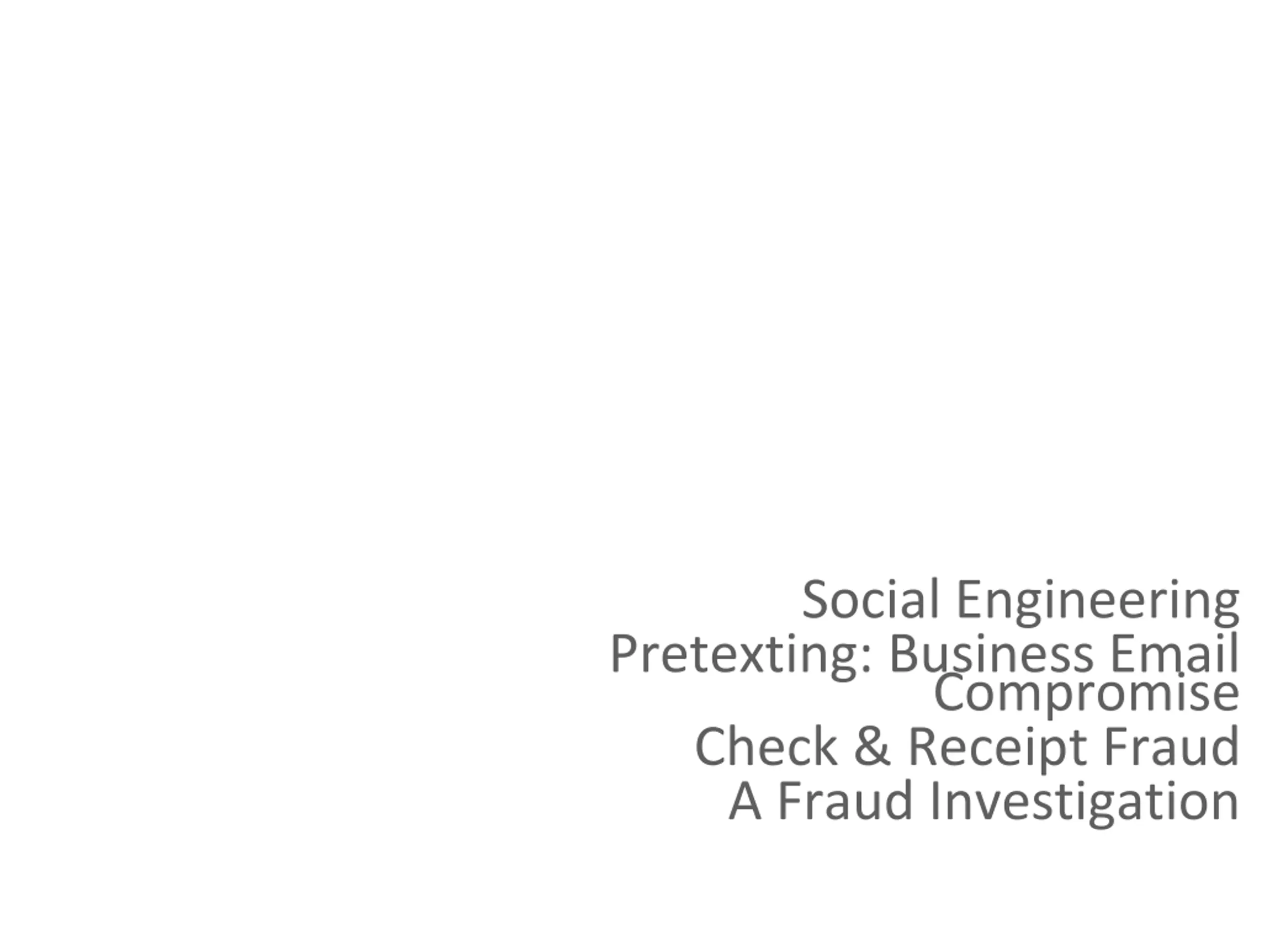 External Fraud Social Engineering Pretexting: Business Email Compromise Check & Receipt Fraud A Fraud Investigation
