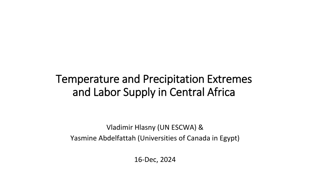Temperature and Precipitation Temperature and Precipitation Extremes and and Labor Supply in Central Africa Labor Supply in Central Africa Extremes Vladimir Hlasny (UN ESCWA) & Yasmine Abdelfattah (Universities of Canada in Egypt) 16-Dec, 2024