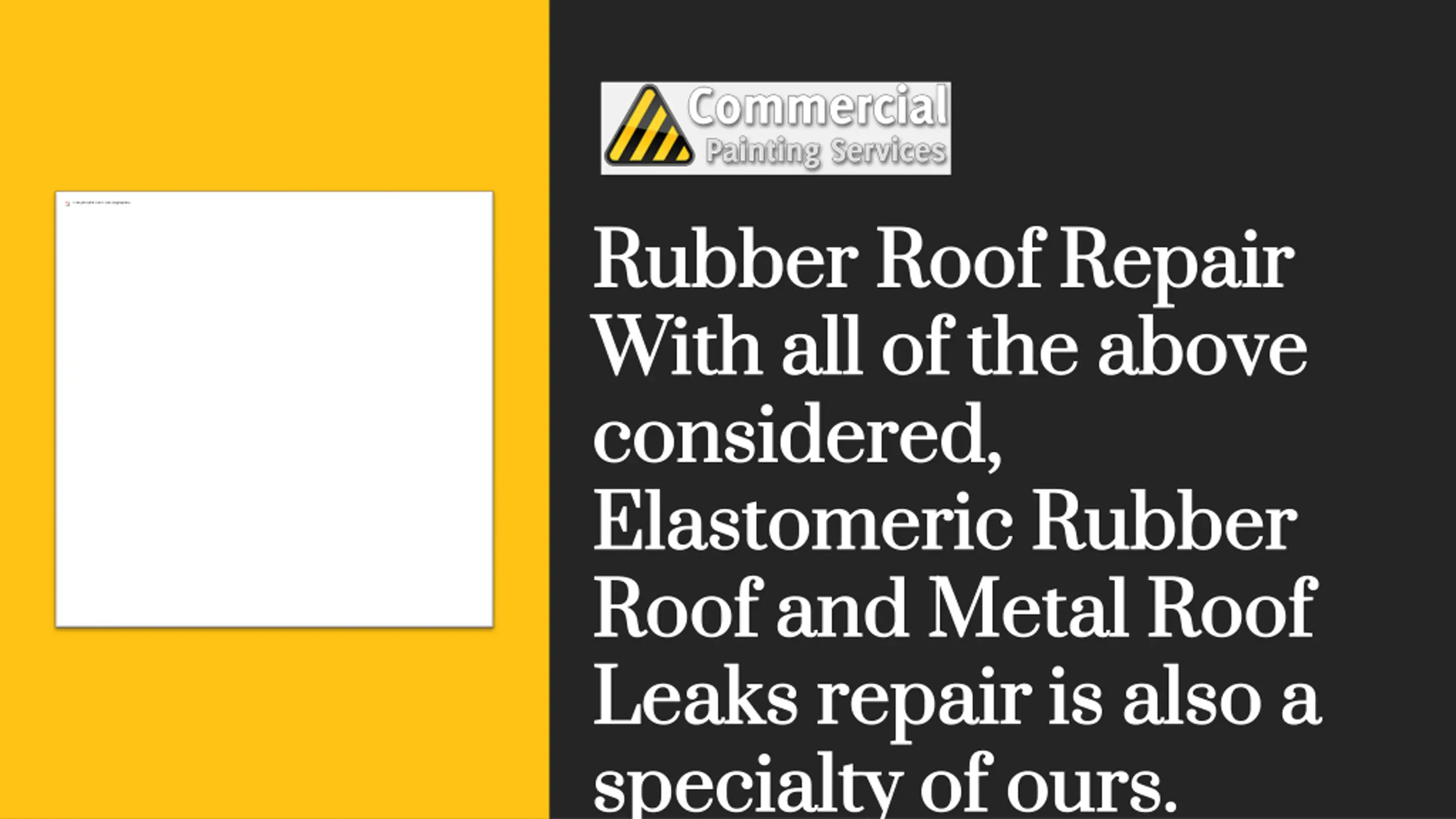 www.commercialpaintingservices.com If you are new to Elastomeric Spray on White Rubber / Reflective Roofing Technology, please have a look at the Rubber Roofing