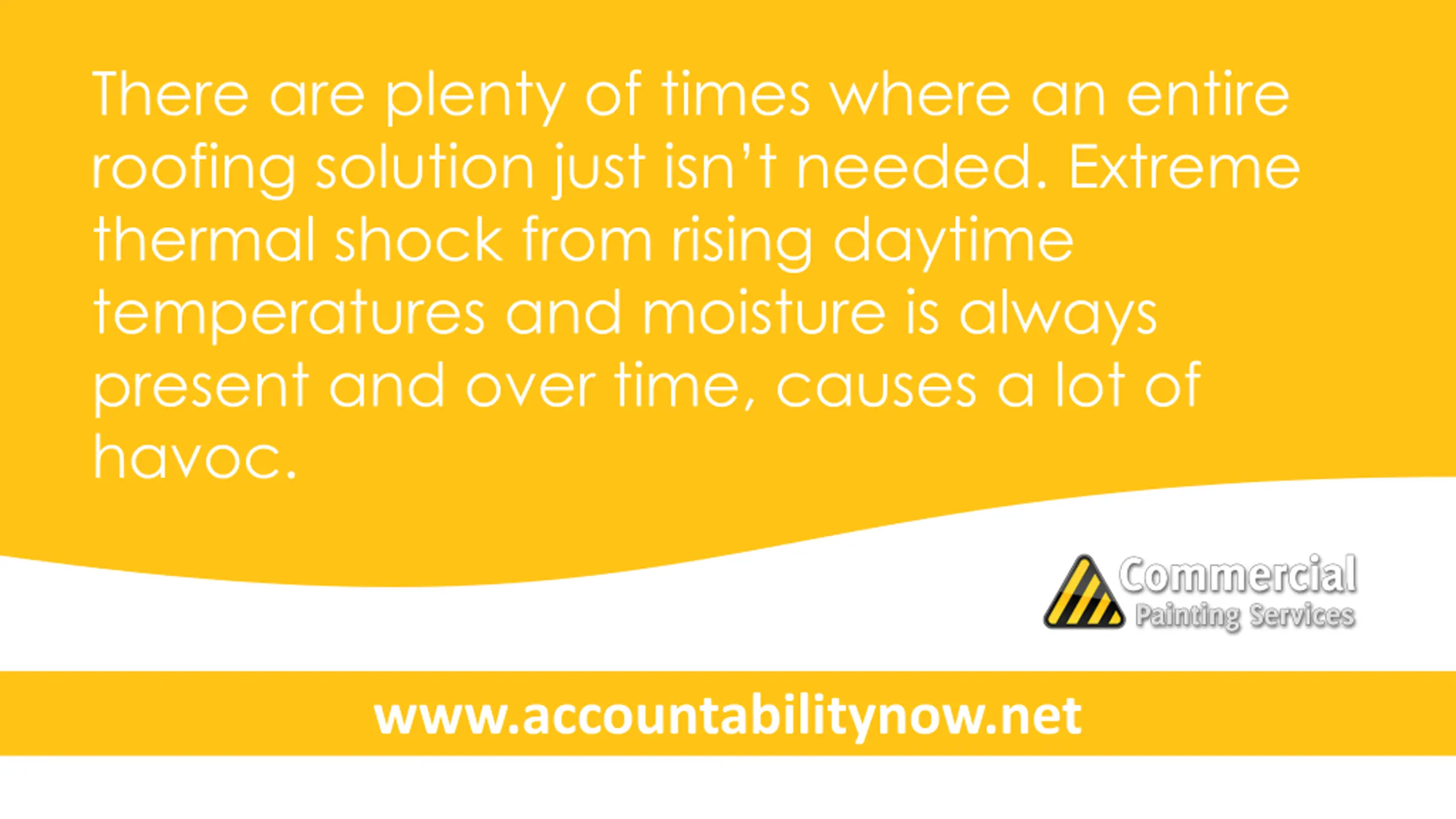 There are plenty of times where an entire roofing solution just isn t needed. Extreme thermal shock from rising daytime temperatures and moisture is always present and over time, causes a lot of havoc. www.accountabilitynow.net