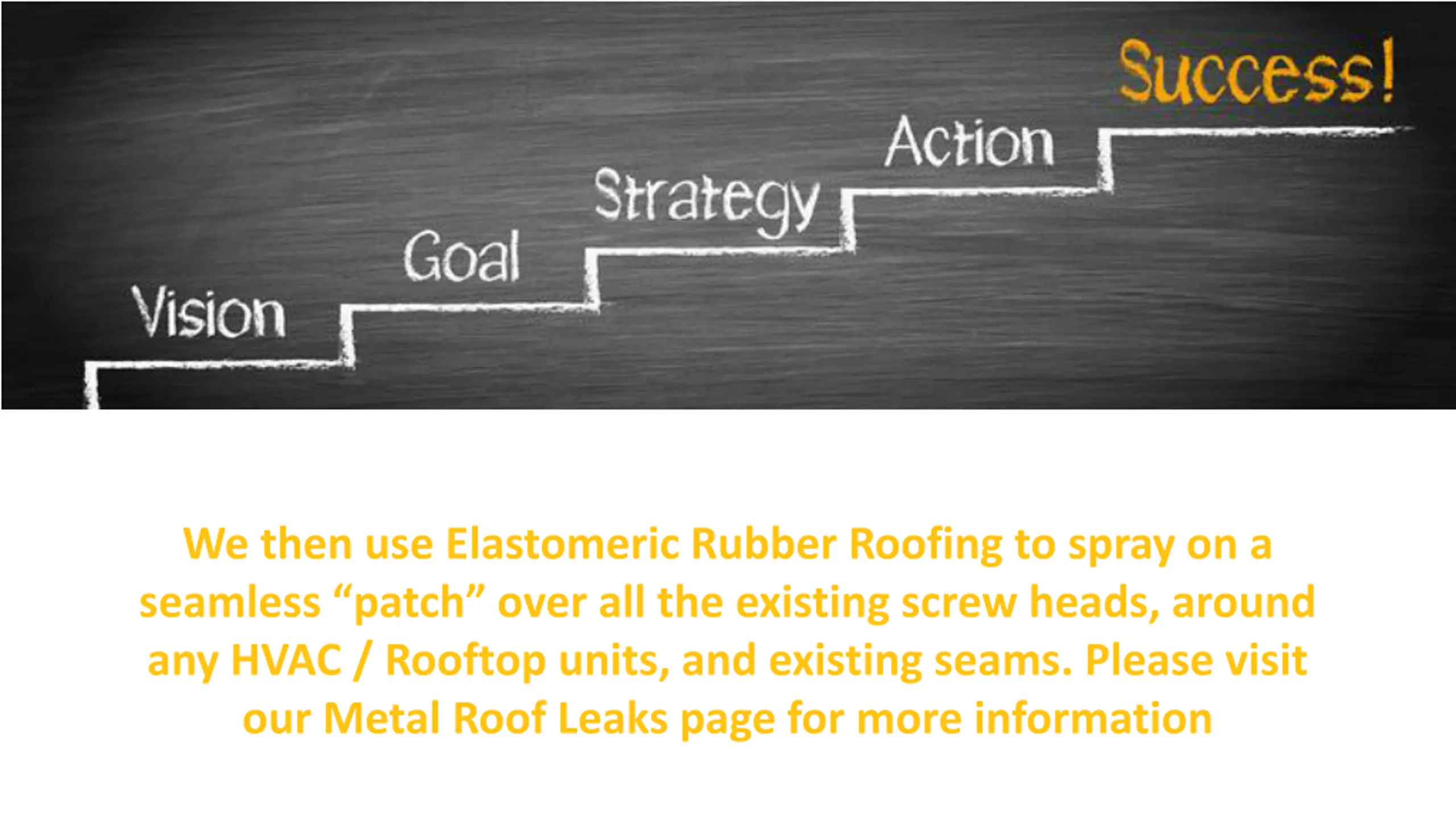 We then use Elastomeric Rubber Roofing to spray on a seamless patch over all the existing screw heads, around any HVAC / Rooftop units, and existing seams. Please visit our Metal Roof Leaks page for more information