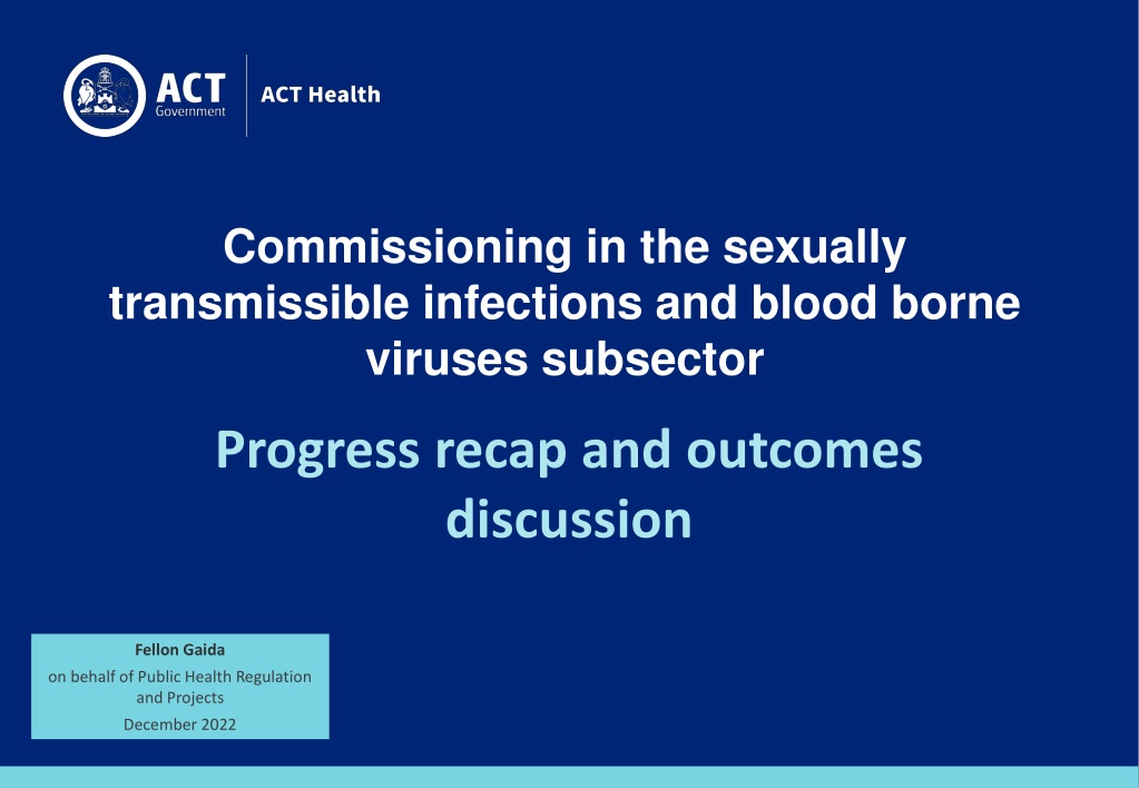 Commissioning in the sexually transmissible infections and blood borne viruses subsector Progress recap and outcomes discussion Fellon Gaida on behalf of Public Health Regulation and Projects December 2022