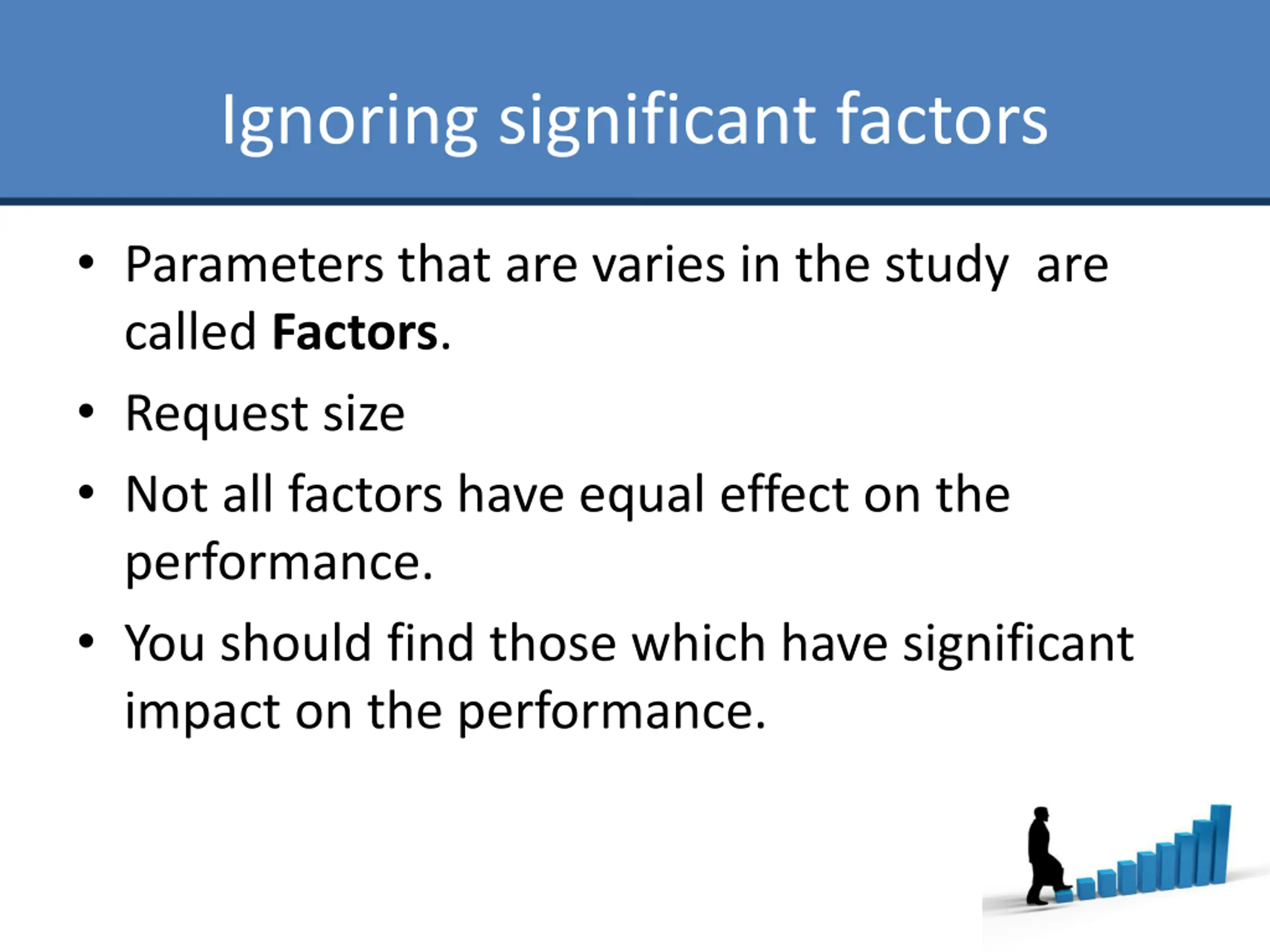 Ignoring significant factors Parameters that are varies in the study are called Factors. Request size Not all factors have equal effect on the performance. You should find those which have significant impact on the performance.