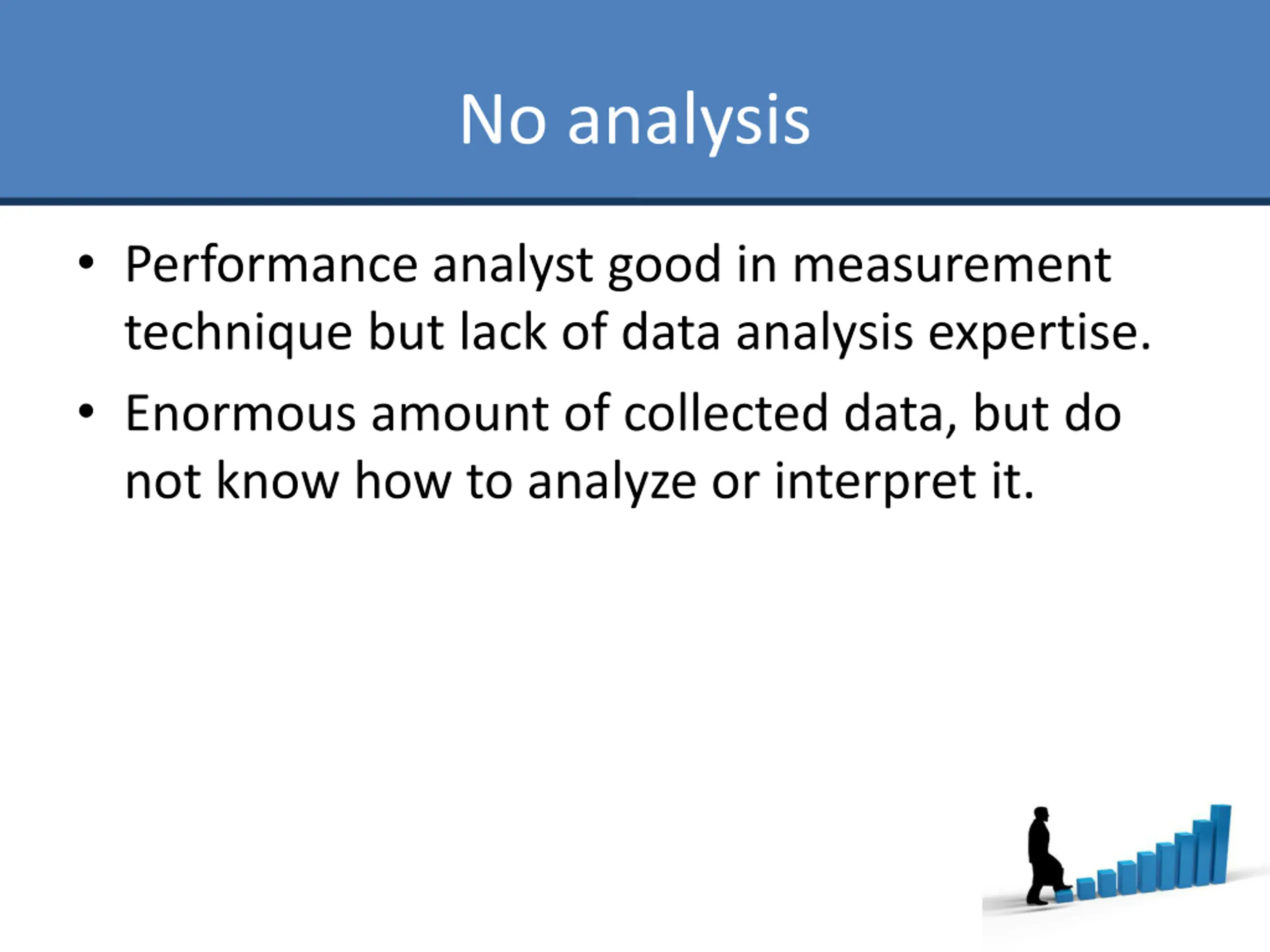 No analysis Performance analyst good in measurement technique but lack of data analysis expertise. Enormous amount of collected data, but do not know how to analyze or interpret it.