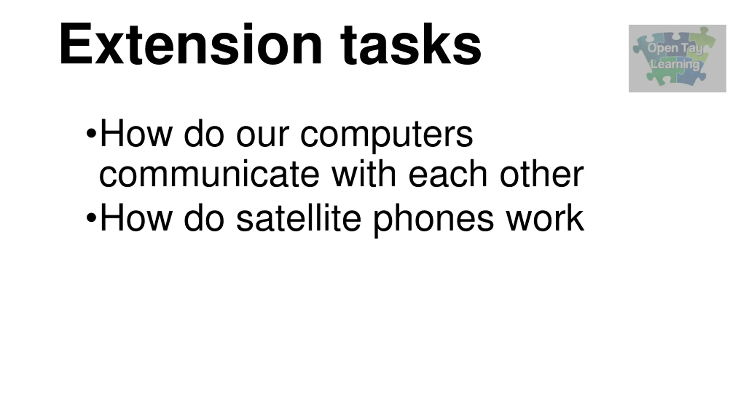 Extension tasks How do our computers communicate with each other How do satellite phones work