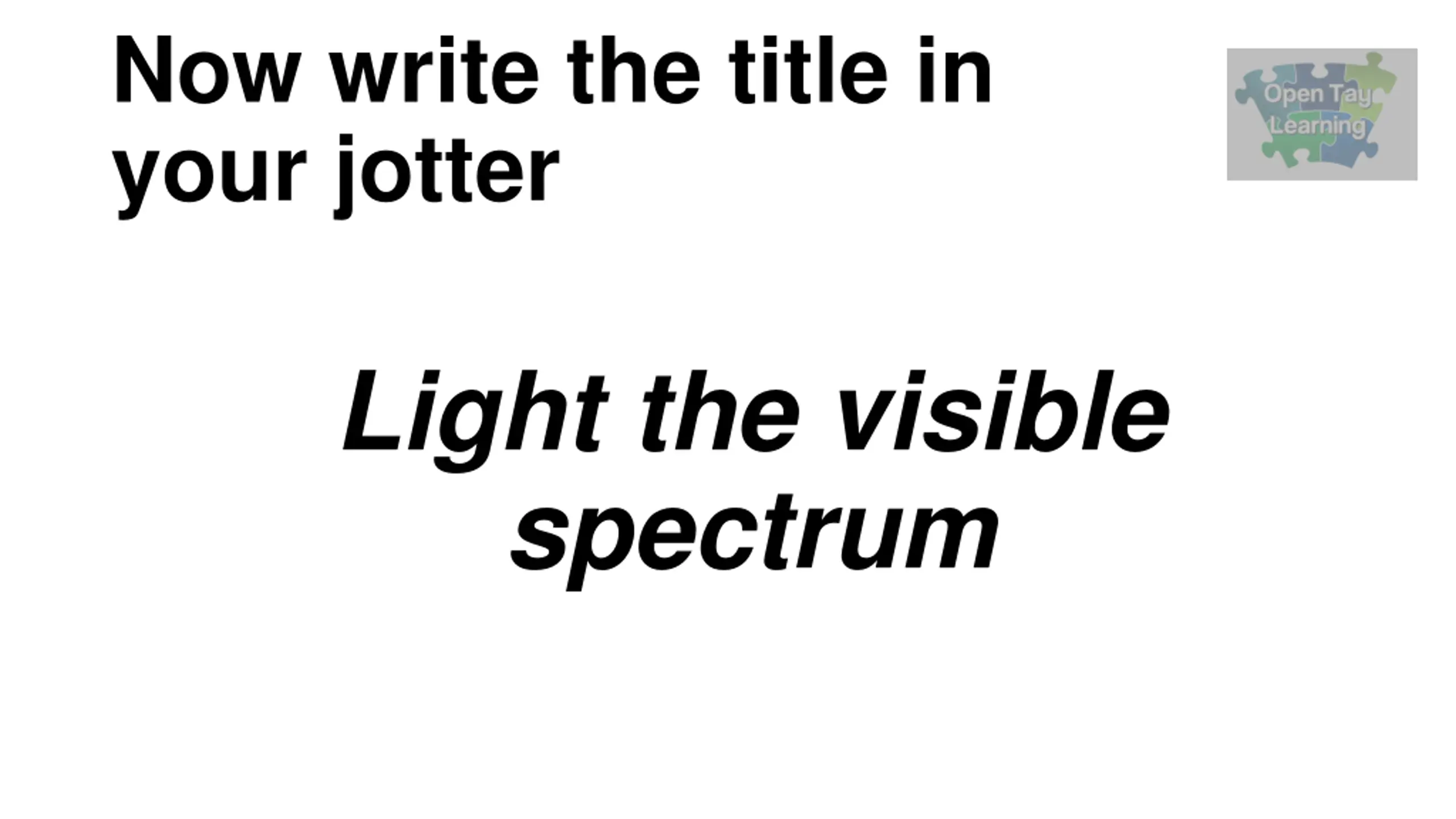 Now write the title in your jotter Light the visible spectrum