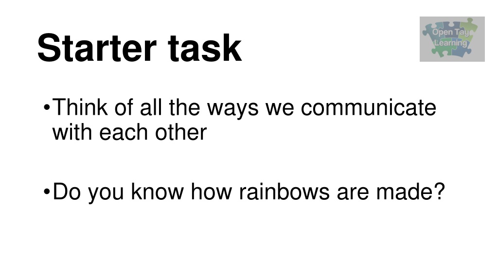 Starter task Think of all the ways we communicate with each other Do you know how rainbows are made?