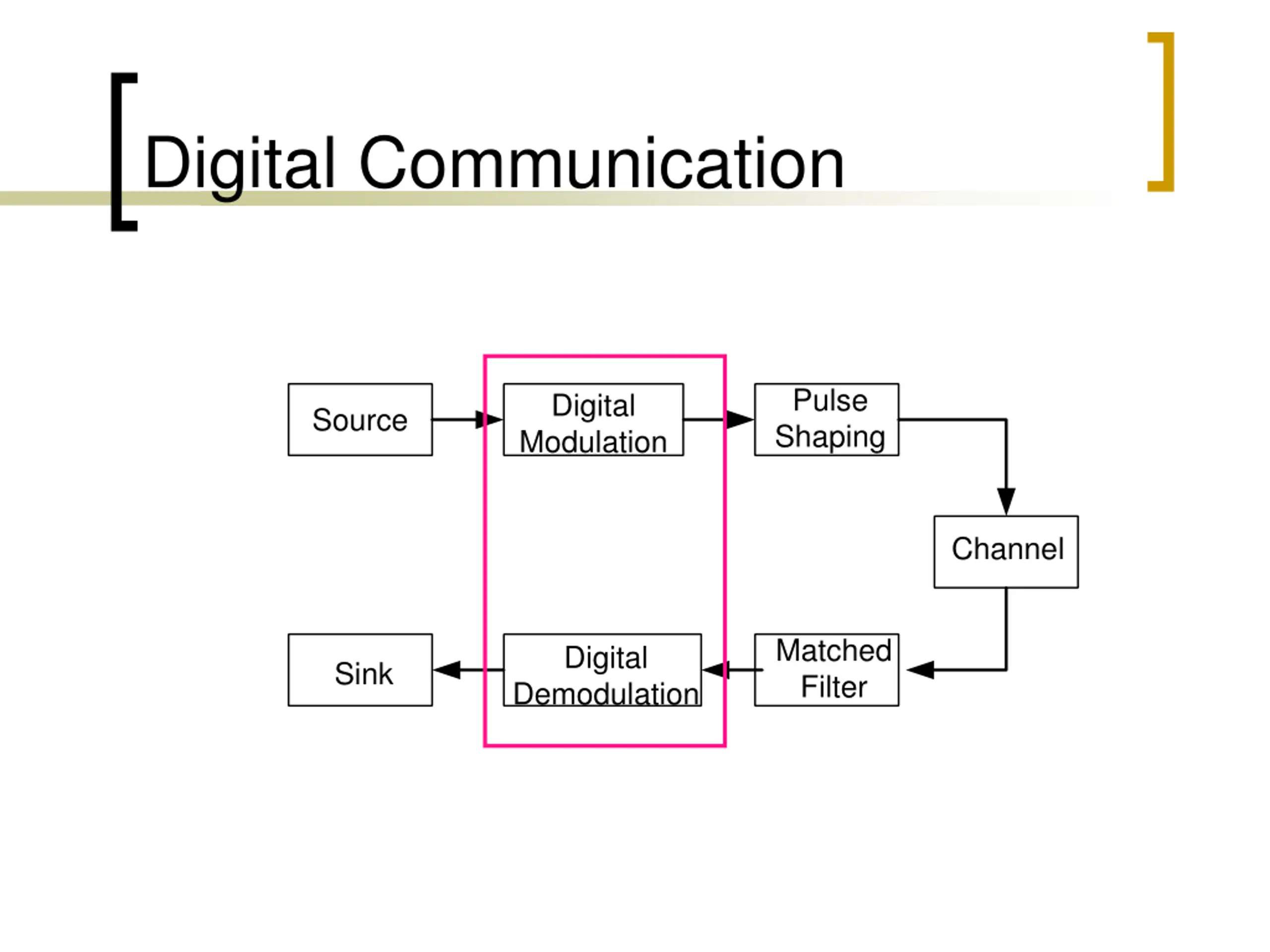 Digital Communication Pulse Shaping Digital Modulation Source Channel Matched Filter Digital Sink Demodulation