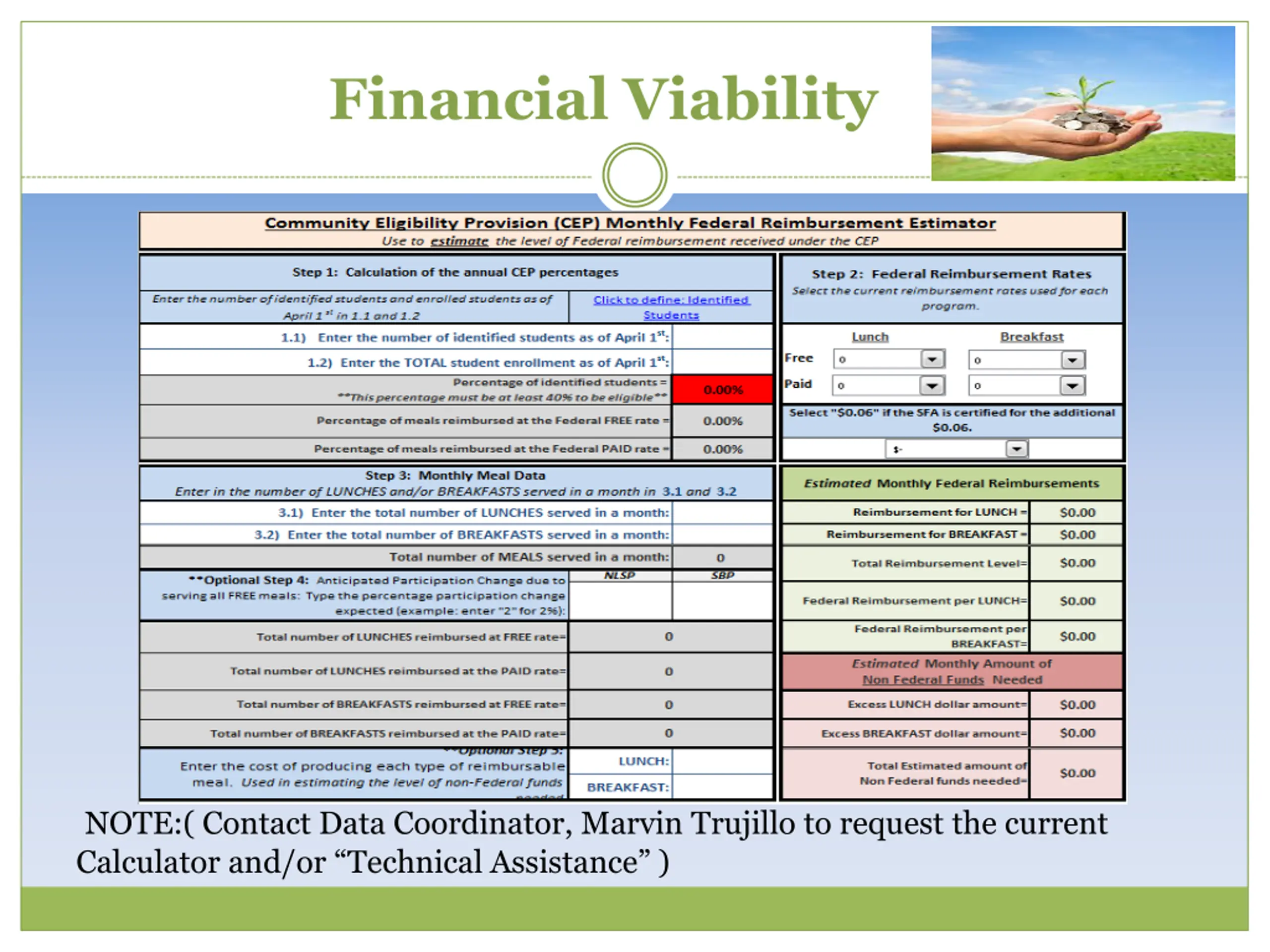 Financial Viability NOTE:( Contact Data Coordinator, Marvin Trujillo to request the current Calculator and/or Technical Assistance )