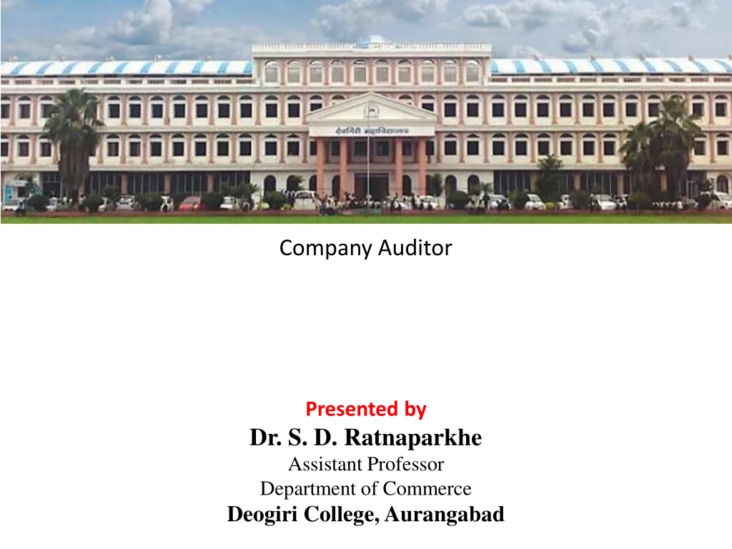 Company Auditor Presented by Dr. S. D. Ratnaparkhe Assistant Professor Department of Commerce Deogiri College, Aurangabad