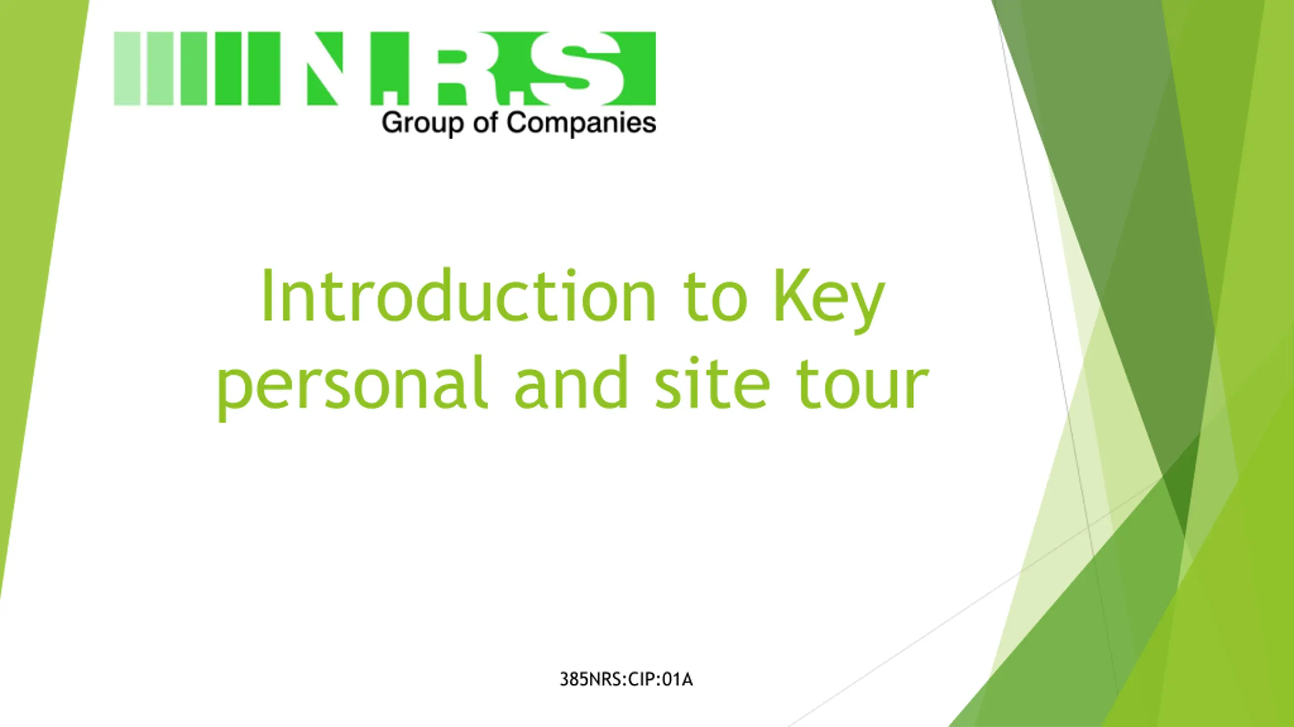Contents Welcome message Company History New starter forms / Contracts / checks Company Handbooks Company Policies (9001 &14001) HASAWA Presentation COSSH Awareness Presentation Fire Awareness Presentation Pensions and other services PPE Issue and sizing Introduction to Key personal and site tour 385NRS:CIP:01A