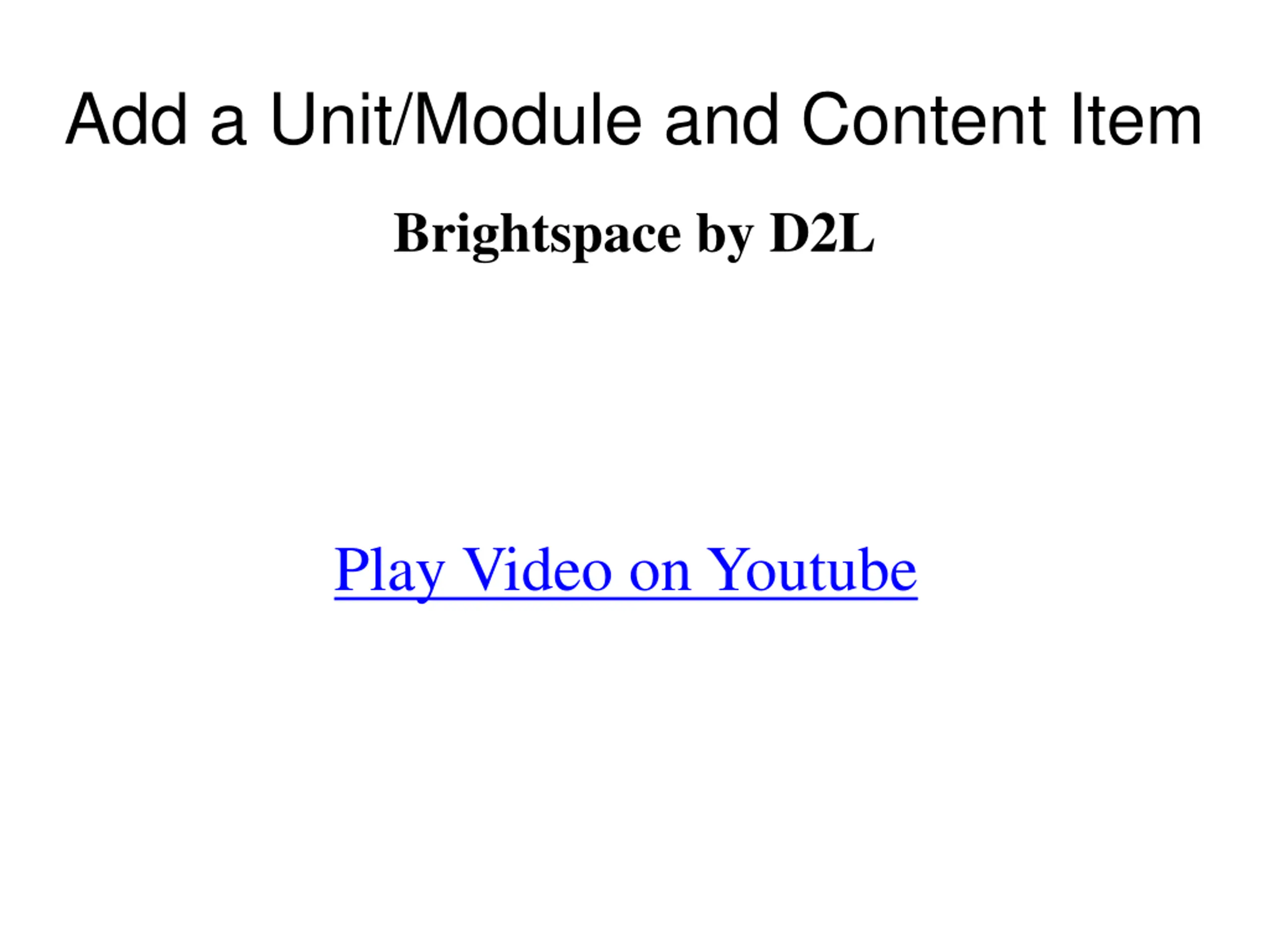 Add a Unit/Module and Content Item Brightspace by D2L Play Video on Youtube