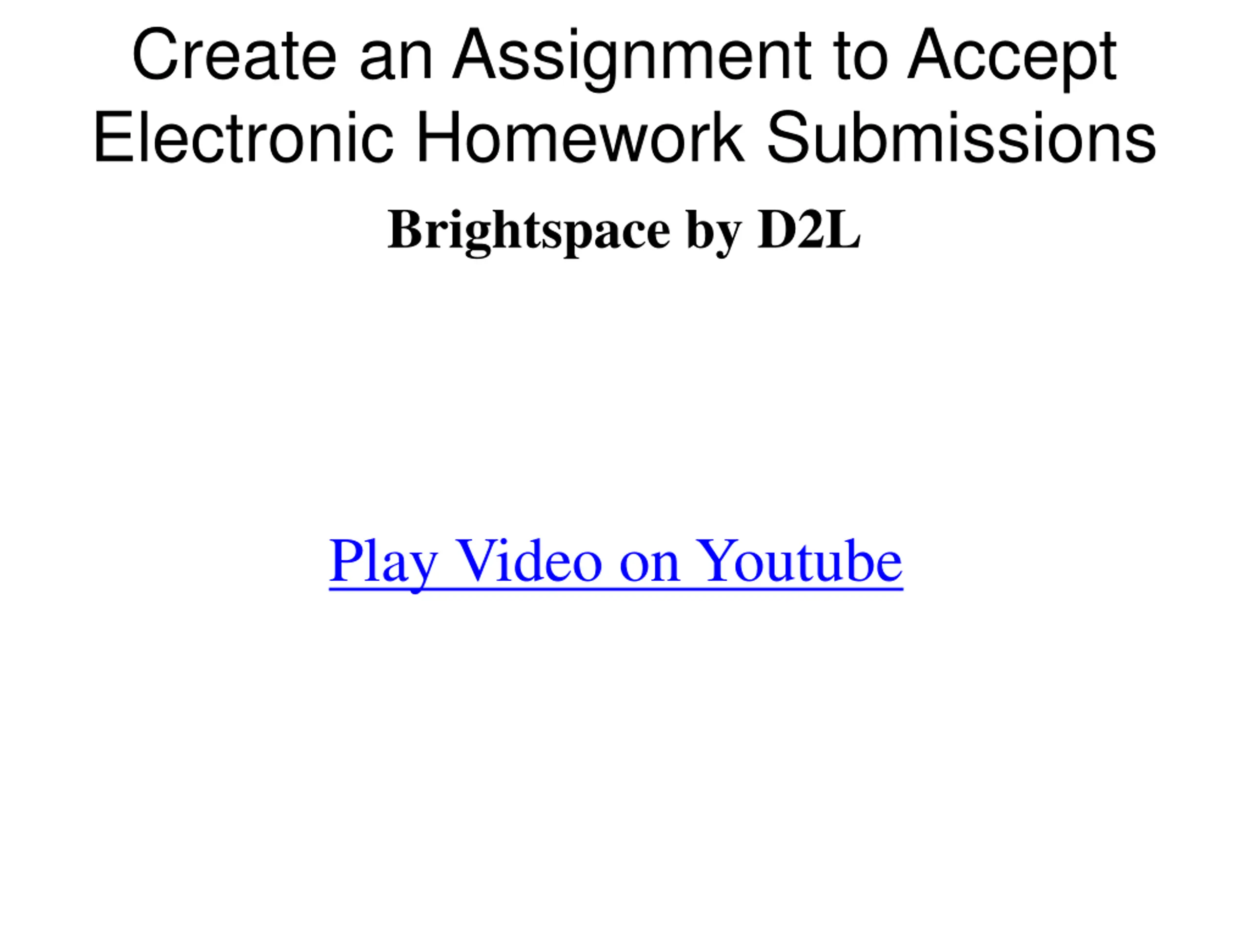 Create an Assignment to Accept Electronic Homework Submissions Brightspace by D2L Play Video on Youtube