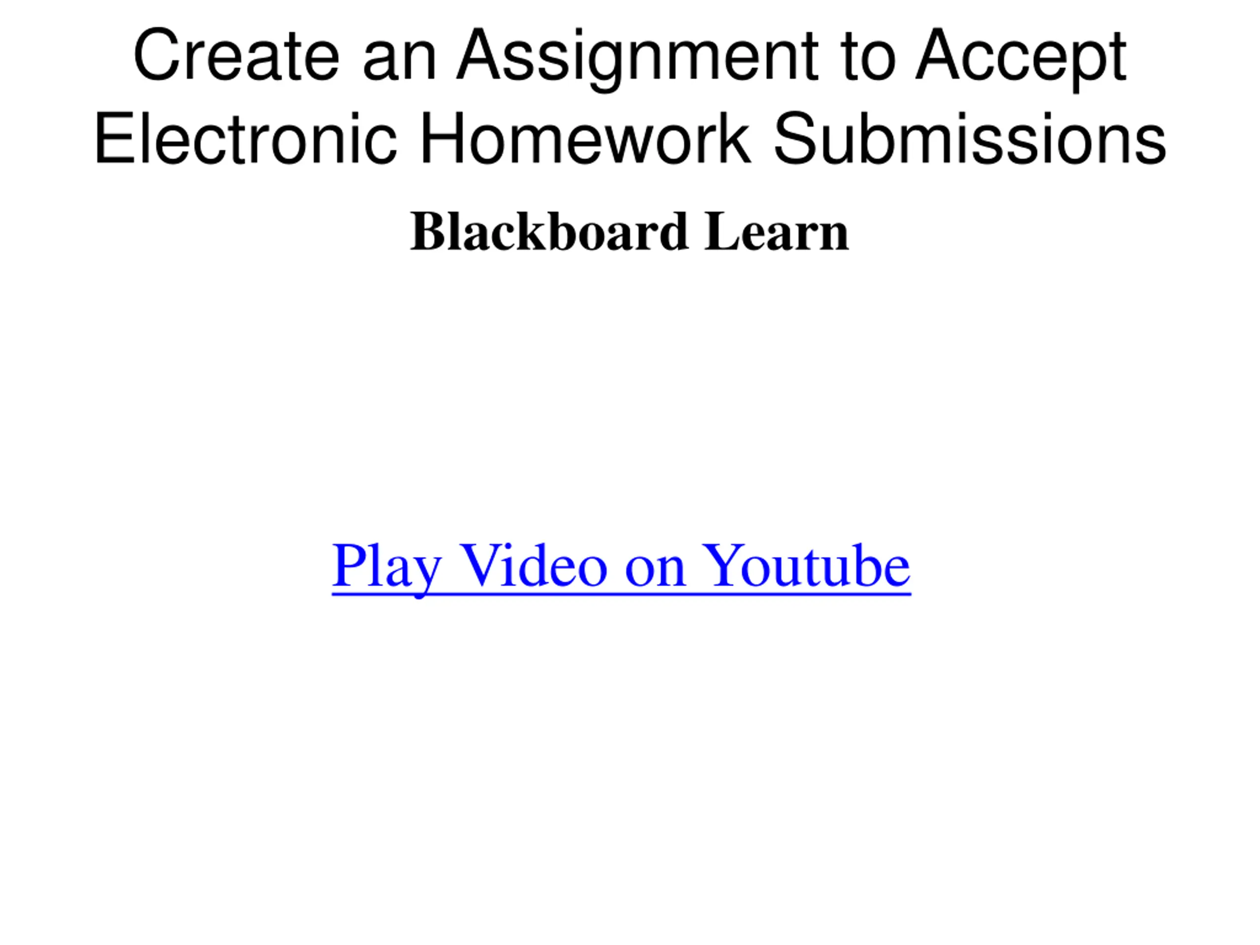 Create an Assignment to Accept Electronic Homework Submissions Blackboard Learn Play Video on Youtube