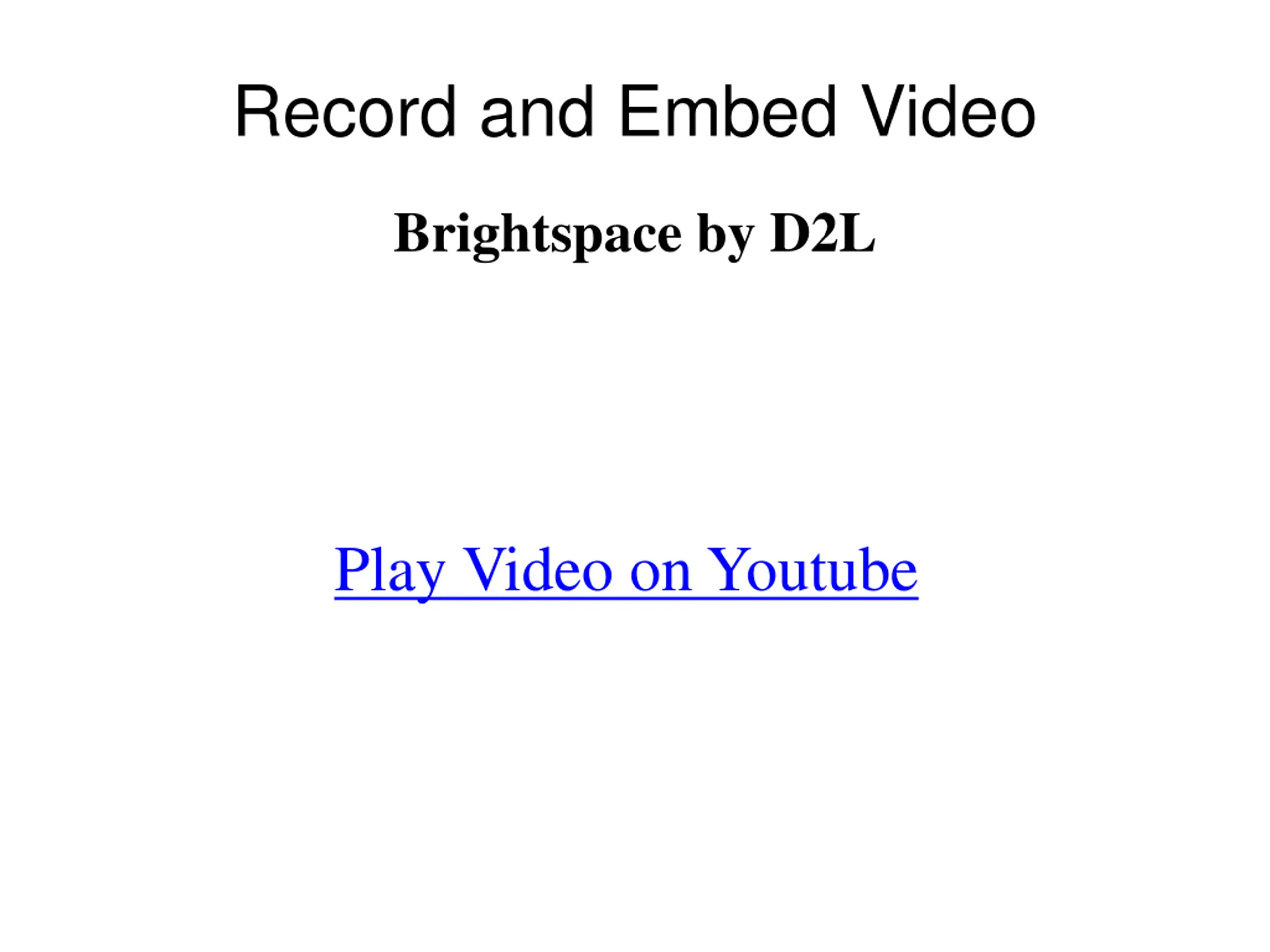 Record and Embed Video Brightspace by D2L Play Video on Youtube