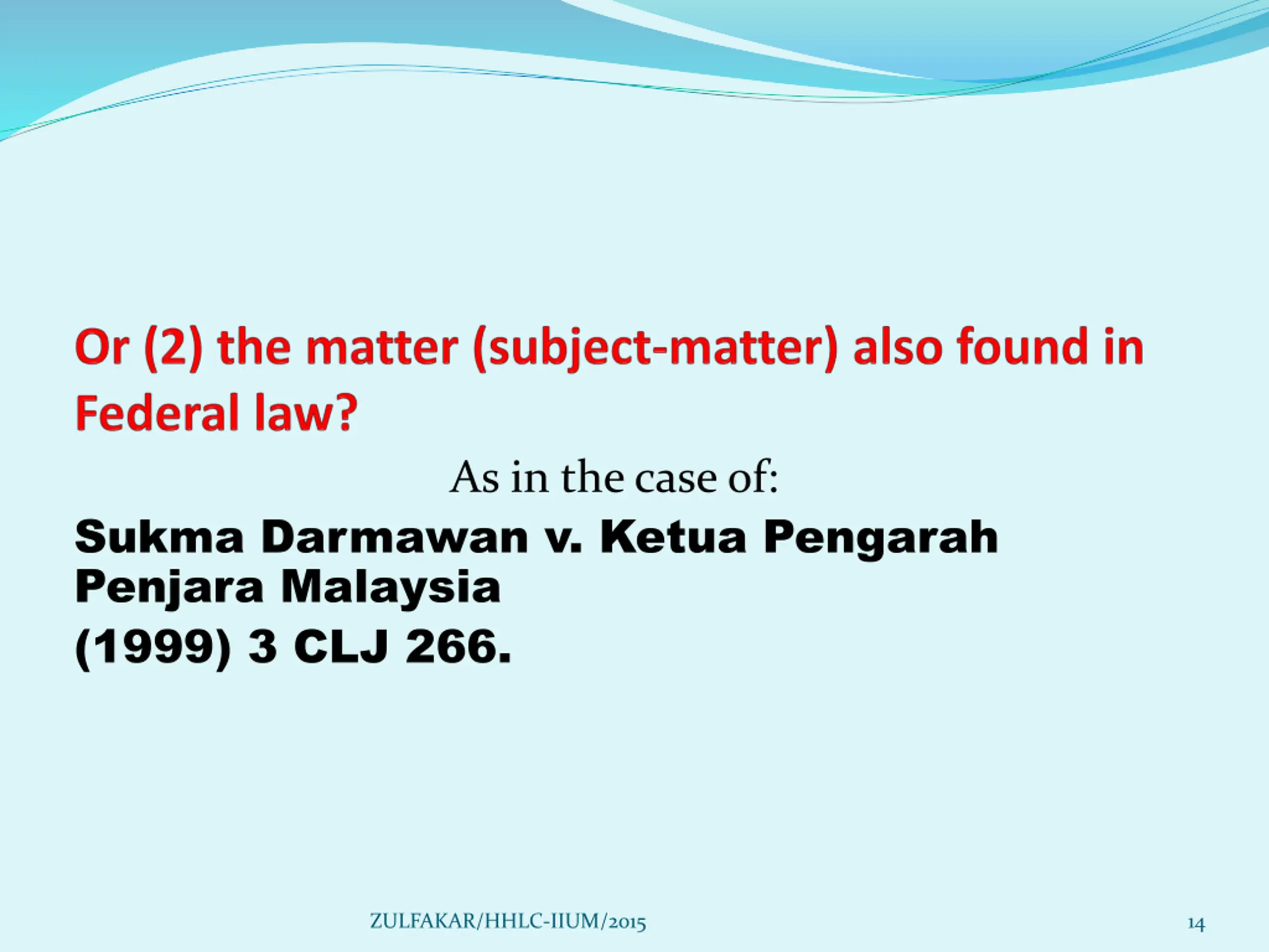 As in the case of: Sukma Darmawan v. Ketua Pengarah Penjara Malaysia (1999) 3 CLJ 266. ZULFAKAR/HHLC-IIUM/2015 14
