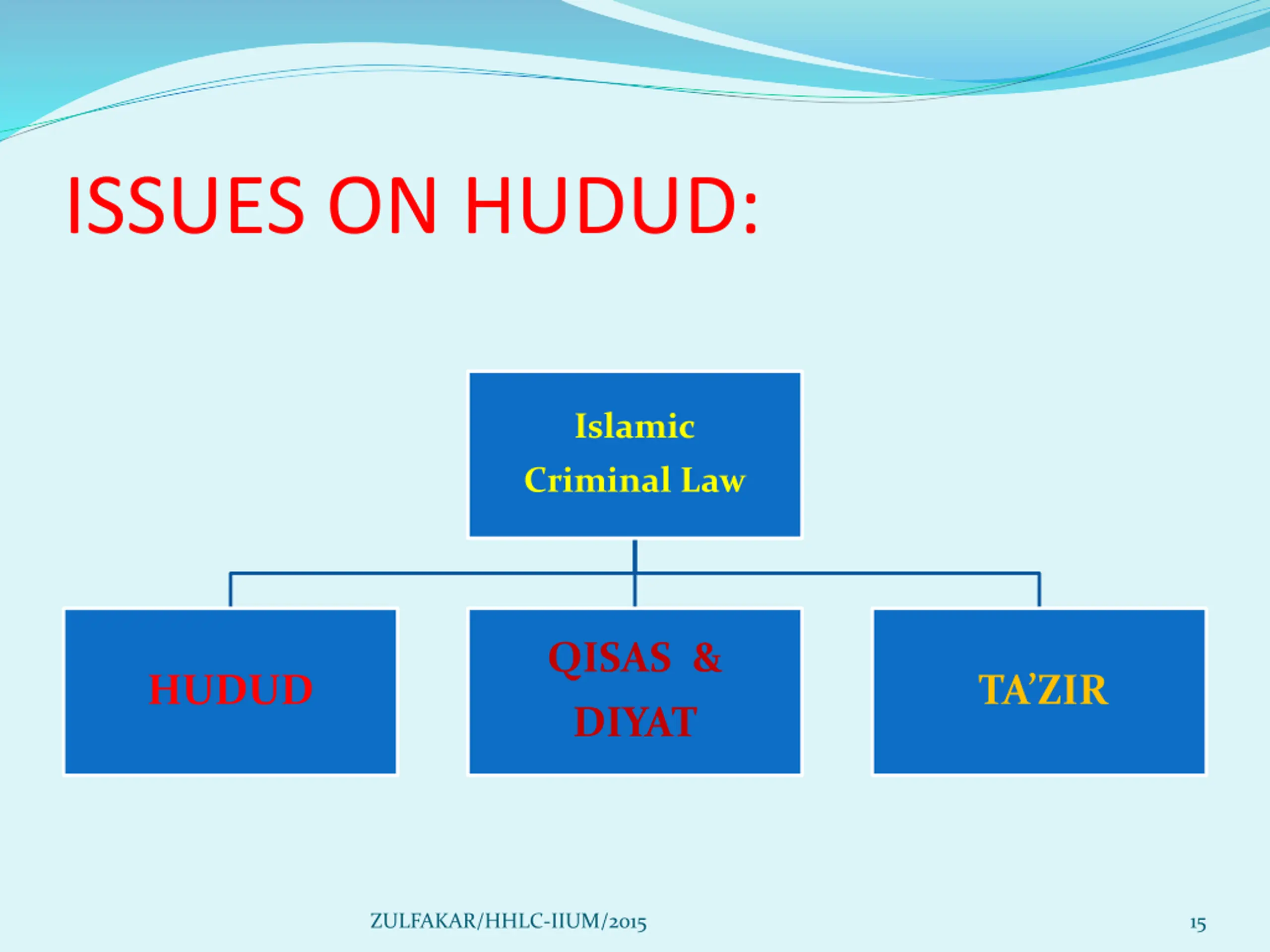 ISSUES ON HUDUD: Islamic Criminal Law QISAS & HUDUD TA ZIR DIYAT ZULFAKAR/HHLC-IIUM/2015 15