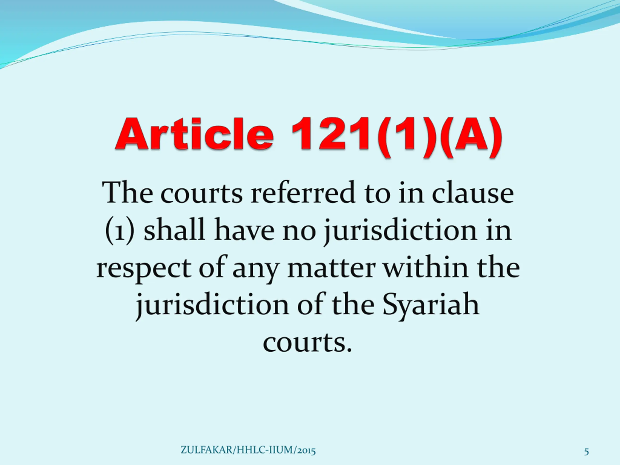 The courts referred to in clause (1) shall have no jurisdiction in respect of any matter within the jurisdiction of the Syariah courts. ZULFAKAR/HHLC-IIUM/2015 5