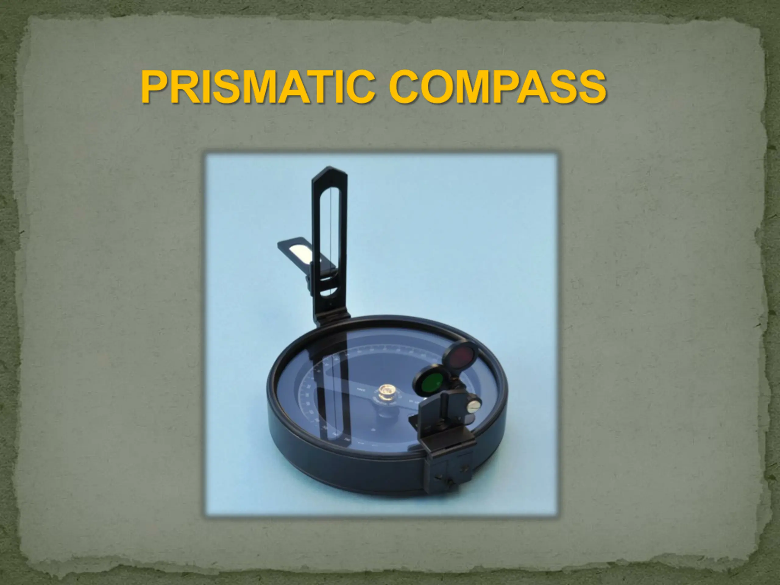 PRISMATIC COMPASS Prismatic Compass comprises of a magnetic needle attached to the circular ring made up of aluminum. The needle is on the pivot and will orient itself in the magnetic meridian The line of sight is defined by the objective vane and the eye slit, both attached to the compass box.